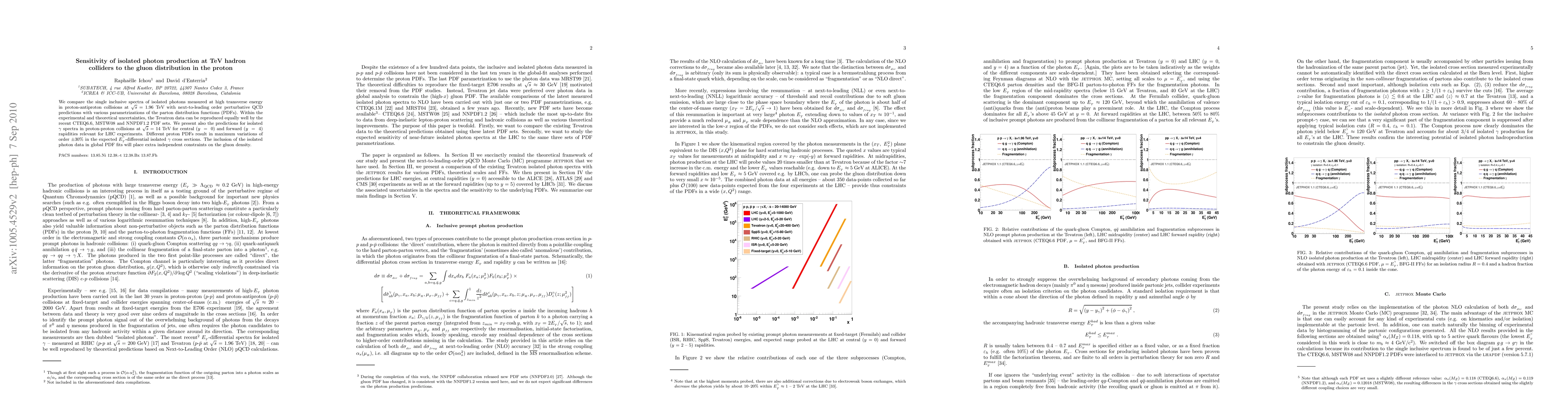 The study compares high-energy photon production at TeV hadron colliders to gluon distribution in protons, finding that recent PDF sets can reproduce data equally well within uncertainties. The results also show varying isolated gamma cross sections by up to 30% for different proton PDFs.