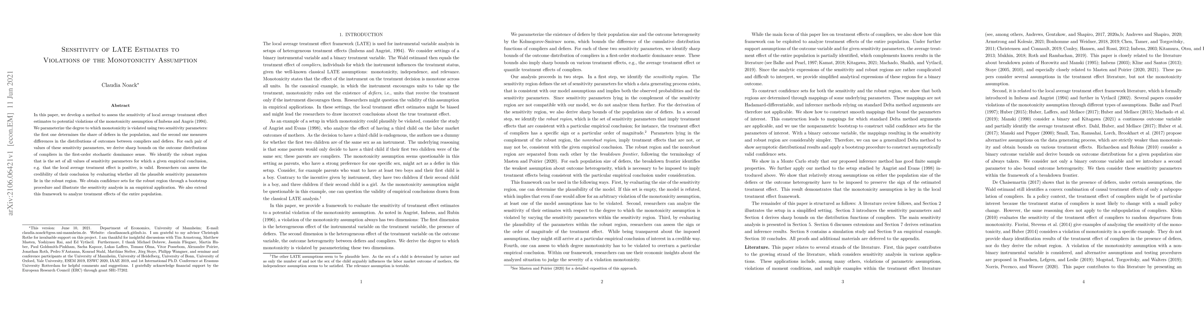 Researchers developed a method to assess sensitivity of local average treatment effect estimates to violations of the monotonicity assumption, providing confidence sets for the robust region of plausible sensitivity parameters.