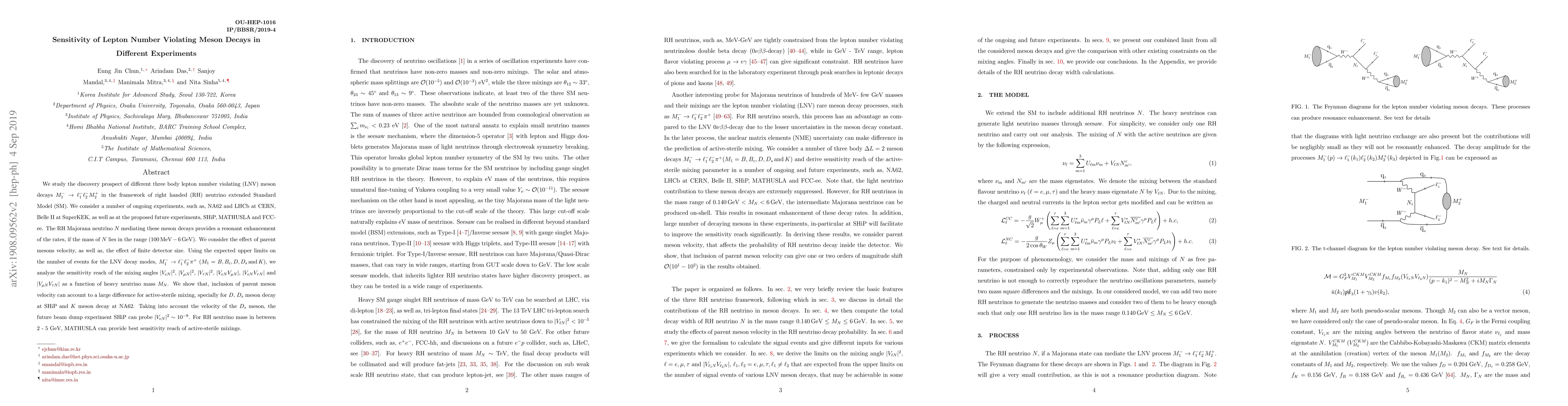Researchers studied the potential of lepton number violating meson decays in various experiments, finding that future experiments like SHiP and MATHUSLA can probe sensitive mixing angles and masses of right-handed neutrinos.