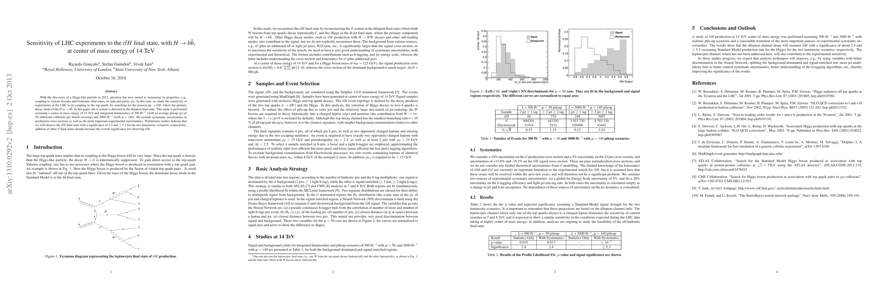 Researchers studied the sensitivity of LHC experiments to the Higgs boson's coupling to the top quark, finding promising signals in two luminosity scenarios with a significance of 2.4 and 5.3 respectively.