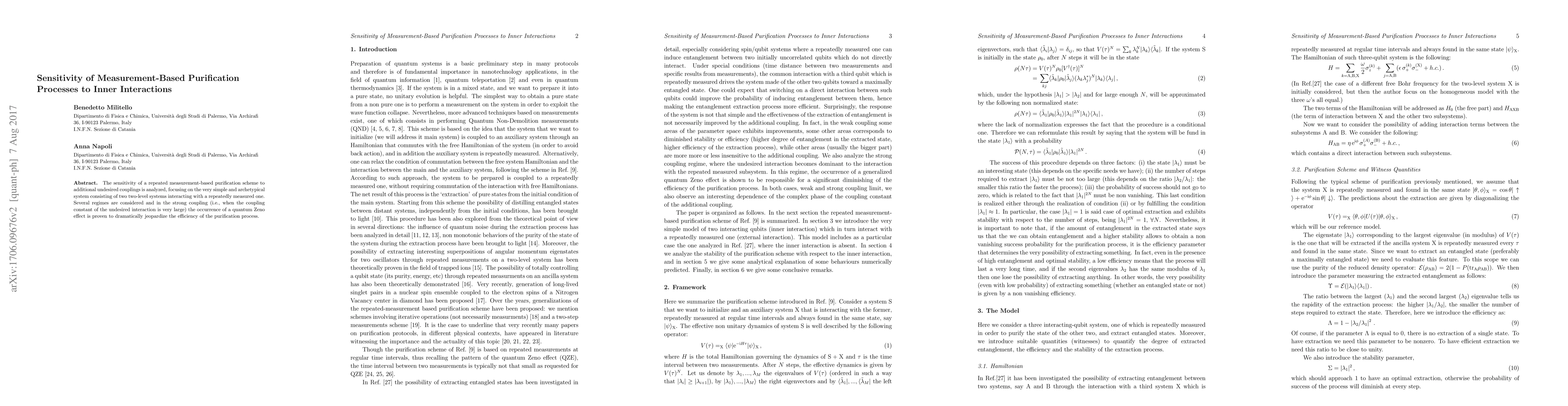 The sensitivity of a repeated measurement-based purification scheme to additional undesired couplings is analyzed, focusing on the very simple and archetypical system consisting of two two-level systems interacting with a repeatedly measured one. Several regimes are considered and in the strong coupling (i.e., when the coupling constant of the undesired interaction is very large) the occurrence of a quantum Zeno effect is proven to dramatically jeopardize the efficiency of the purification process.