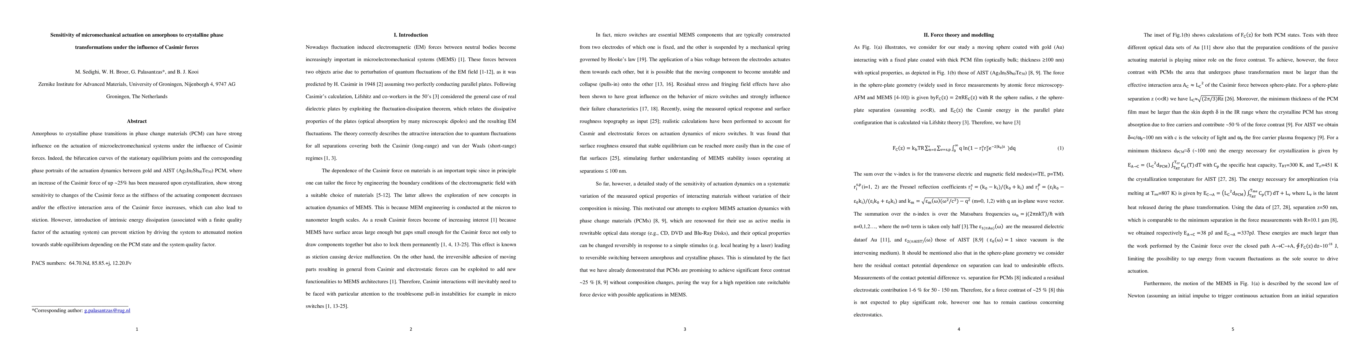 Amorphous to crystalline phase transitions in phase change materials (PCM) can have strong influence on the actuation of microelectromechanical systems under the influence of Casimir forces. Indeed, the bifurcation curves of the stationary equilibrium points and the corresponding phase portraits of the actuation dynamics between gold and AIST PCM, where an increase of the Casimir force of up ~25% has been measured upon crystallization, show strong sensitivity to changes of the Casimir force as the stiffness of the actuating component decreases and/or the effective interaction area of the Casimir force increases, which can also lead to stiction. However, introduction of intrinsic energy dissipation (associated with a finite quality factor of the actuating system) can prevent stiction by driving the system to attenuated motion towards stable equilibrium depending on the PCM state and the system quality factor.