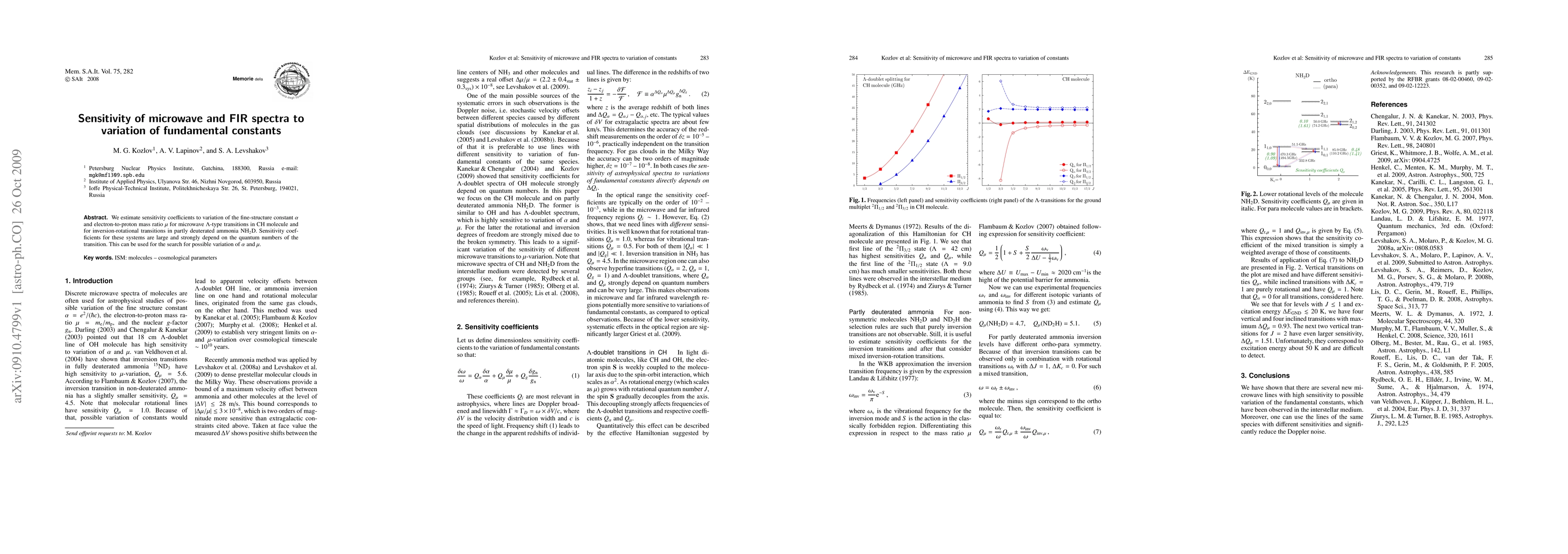 This paper estimates sensitivity coefficients for microwave and FIR spectra of CH and NH2D molecules to variations in the fine-structure constant and electron-to-proton mass ratio, revealing significant dependence on quantum numbers, which can aid in detecting potential changes in fundamental constants.