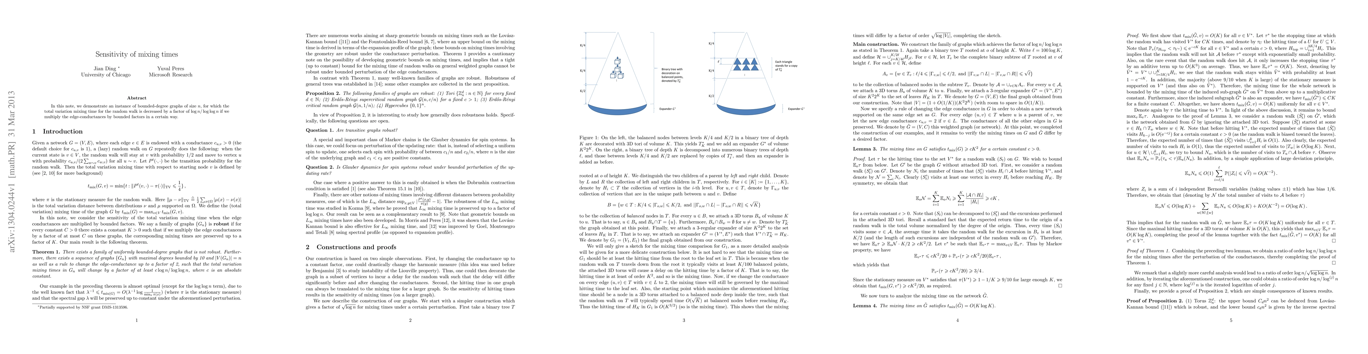 Researchers found that mixing times for random walks on specific graphs with bounded edges can be reduced by a factor of log n in log log n by adjusting edge conductances.