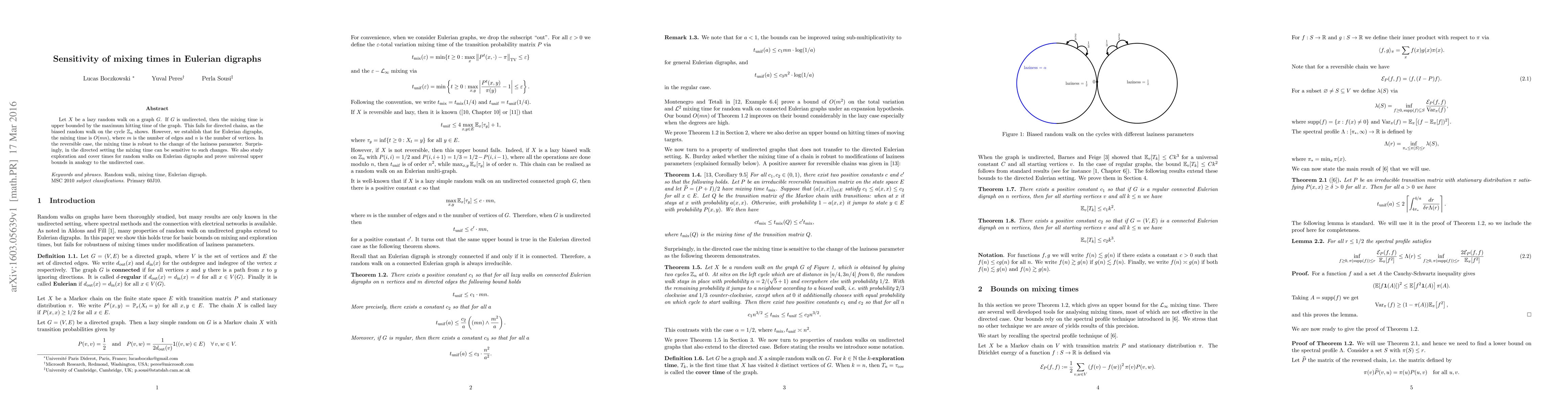 Let $X$ be a lazy random walk on a graph $G$. If $G$ is undirected, then the mixing time is upper bounded by the maximum hitting time of the graph. This fails for directed chains, as the biased random walk on the cycle $\mathbb{Z}_n$ shows. However, we establish that for Eulerian digraphs, the mixing time is $O(mn)$, where $m$ is the number of edges and $n$ is the number of vertices. In the reversible case, the mixing time is robust to the change of the laziness parameter. Surprisingly, in the directed setting the mixing time can be sensitive to such changes. We also study exploration and cover times for random walks on Eulerian digraphs and prove universal upper bounds in analogy to the undirected case.