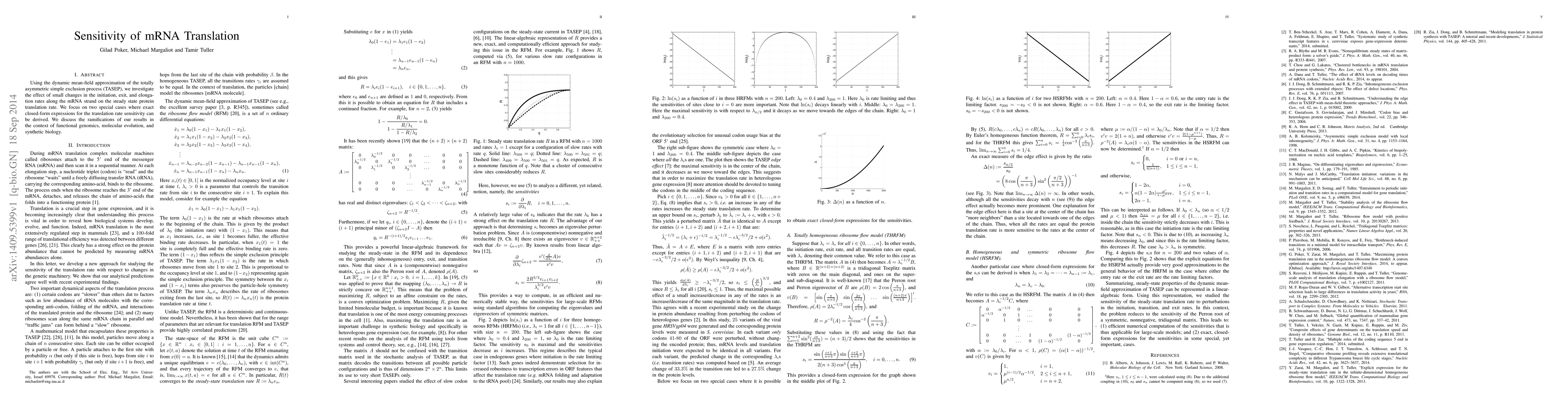 Using the dynamic mean-field approximation of the totally asymmetric simple exclusion process (TASEP), we investigate the effect of small changes in the initiation, exit, and elongation rates along the mRNA strand on the steady state protein translation rate. We focus on two special cases where exact closed-form expressions for the translation rate sensitivity can be derived. We discuss the ramifications of our results in the context of functional genomics, molecular evolution, and synthetic biology.