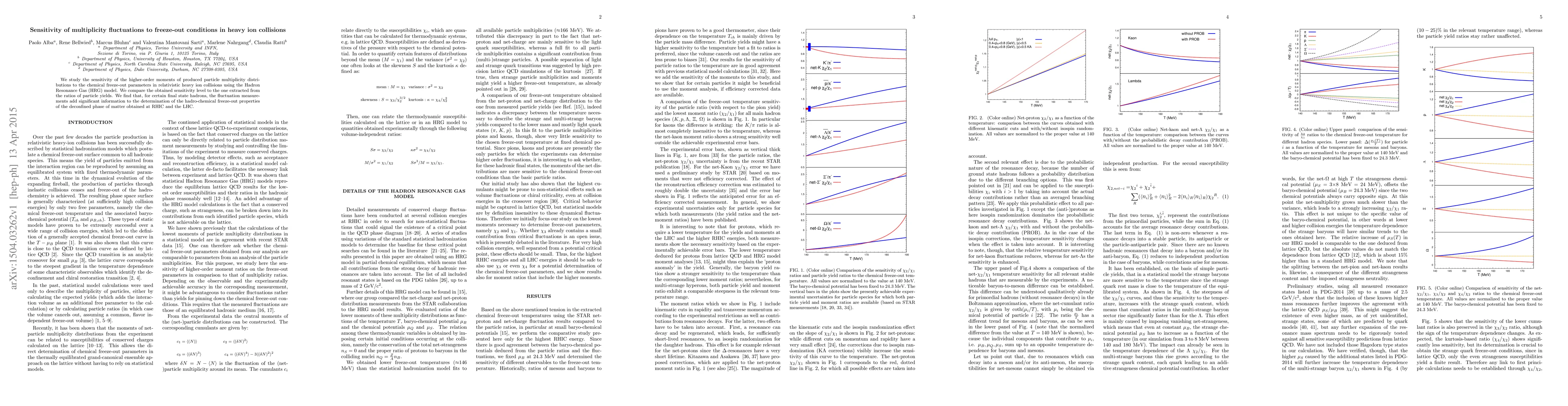 We study the sensitivity of the higher-order moments of produced particle multiplicity distributions to the chemical freeze-out parameters in relativistic heavy ion collisions using the Hadron Resonance Gas (HRG) model. We compare the obtained sensitivity level to the one extracted from the ratios of particle yields. We find that, for certain final state hadrons, the fluctuation measurements add significant information to the determination of the hadro-chemical freeze-out properties of the deconfined phase of matter obtained at RHIC and the LHC.