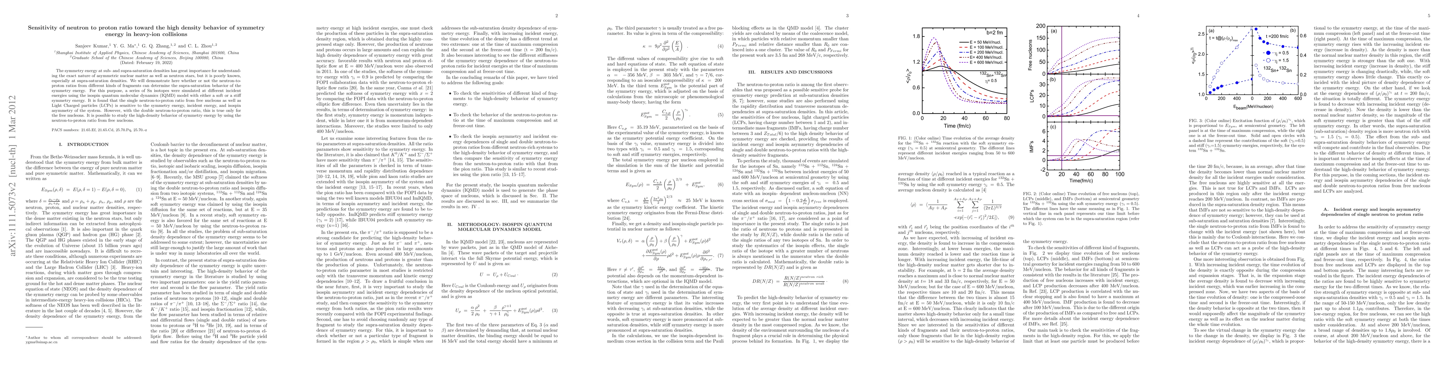 The symmetry energy at sub and supra-saturation densities has a great importance in understanding the exact nature of asymmetric nuclear matter as well as neutron star, but, it is poor known, especially at supra-saturation densities. We will demonstrate here that the neutron to proton ratios from different kind of fragments is able to determine the supra-saturation behavior of symmetry energy or not. For this purpose, a series of Sn isotopes are simulated at different incident energies using the Isospin Quantum Molecular Dynamics (IQMD) model with either a soft or a stiff symmetry energy for the present study. It is found that the single neutron to proton ratio from free nucleons as well as LCP's is sensitive towards the symmetry energy, incident energy as well as isospin asymmetry of the system. However, with the double neutron to proton ratio, it is true only for the free nucleons. It is possible to study the high density behavior of symmetry energy by using the neutron to proton ratio from free nucleons.