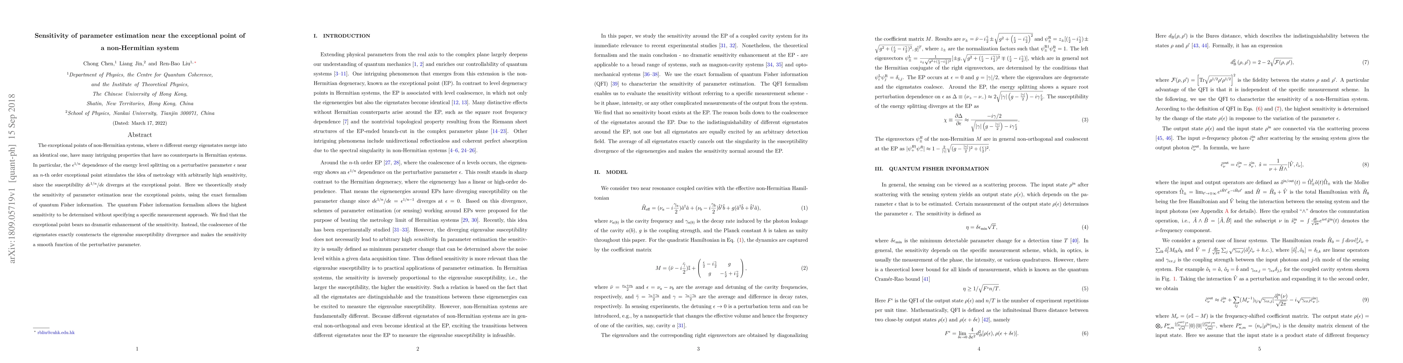 This paper explores the sensitivity of parameter estimation near exceptional points in non-Hermitian systems, revealing that despite the intriguing properties of these points, they do not significantly enhance sensitivity. The study uses quantum Fisher information to show that the coalescence of eigenstates counteracts the susceptibility divergence, resulting in a smooth sensitivity function.