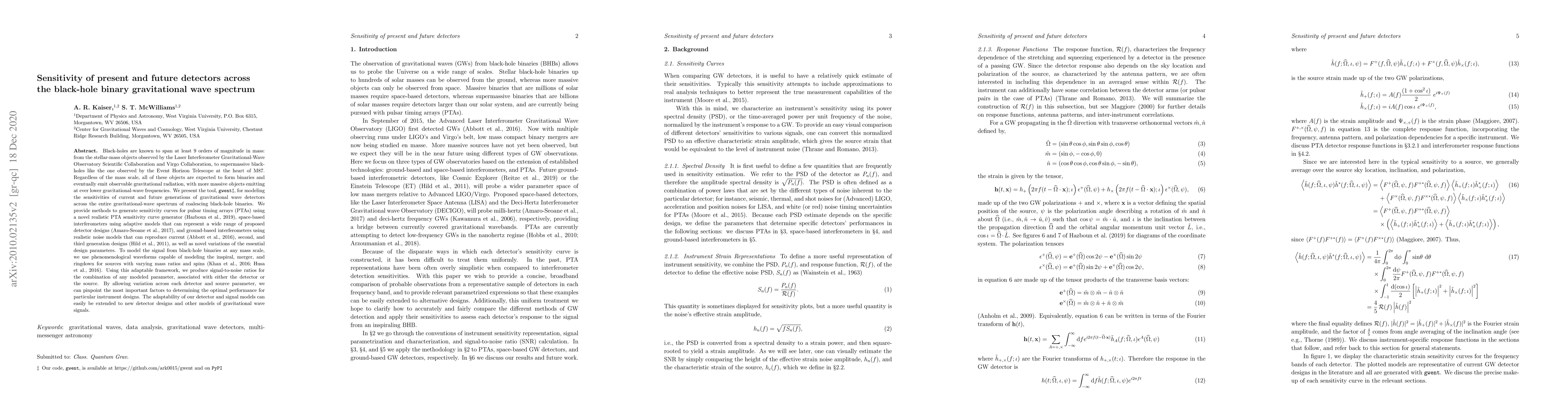 This paper introduces gwent, a tool for modeling the sensitivities of current and future gravitational wave detectors across the spectrum of black-hole binary mergers. It provides adaptable models for various detector types, including pulsar timing arrays, space-based interferometers, and ground-based interferometers, to determine optimal performance based on detector and source parameters.