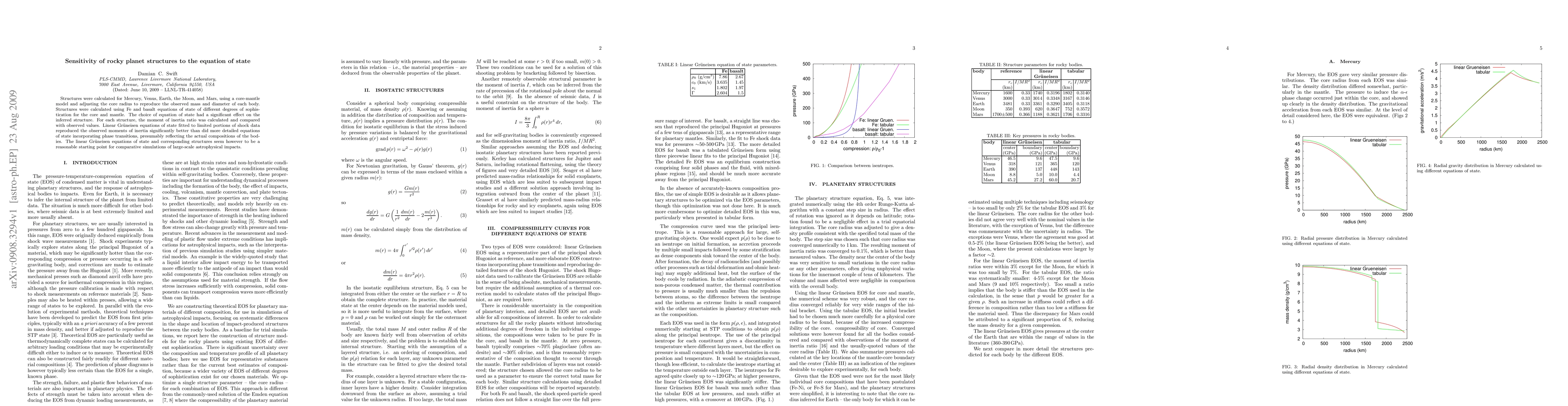 Structures were calculated for Mercury, Venus, Earth, the Moon, and Mars, using a core-mantle model and adjusting the core radius to reproduce the observed mass and diameter of each body. Structures were calculated using Fe and basalt equations of state of different degrees of sophistication for the core and mantle. The choice of equation of state had a significant effect on the inferred structure. For each structure, the moment of inertia ratio was calculated and compared with observed values. Linear Grueneisen equations of state fitted to limited portions of shock data reproduced the observed moments of inertia significantly better than did more detailed equations of state incorporating phase transitions, presumably reflecting the actual compositions of the bodies. The linear Grueneisen equations of state and corresponding structures seem however to be a reasonable starting point for comparative simulations of large-scale astrophysical impacts.