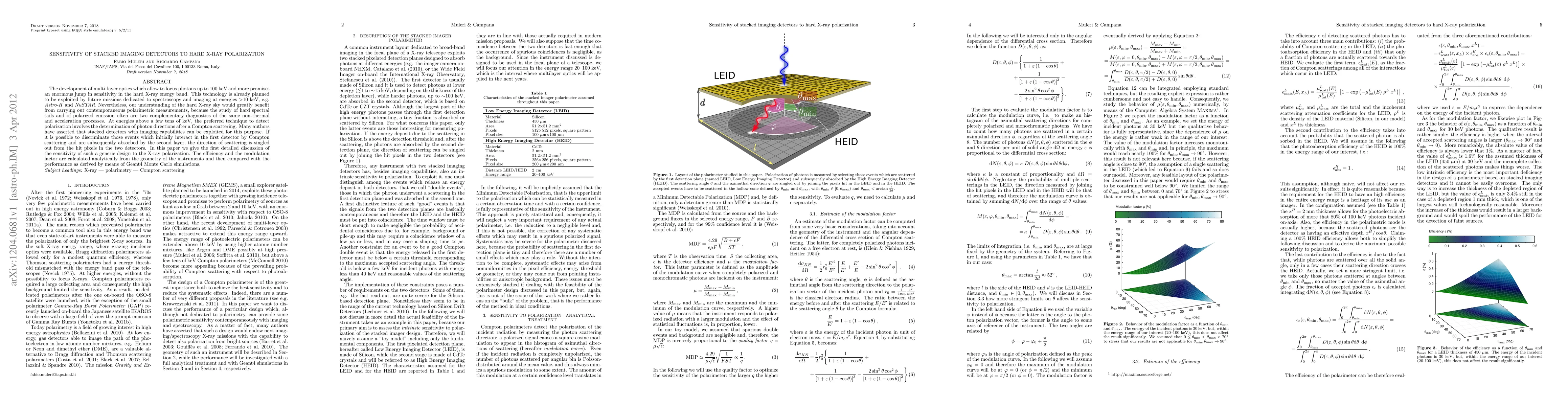 The paper presents a detailed analysis of stacked imaging detectors' sensitivity to hard X-ray polarization, including analytical calculations and Monte Carlo simulations, providing insights into their performance and limitations.