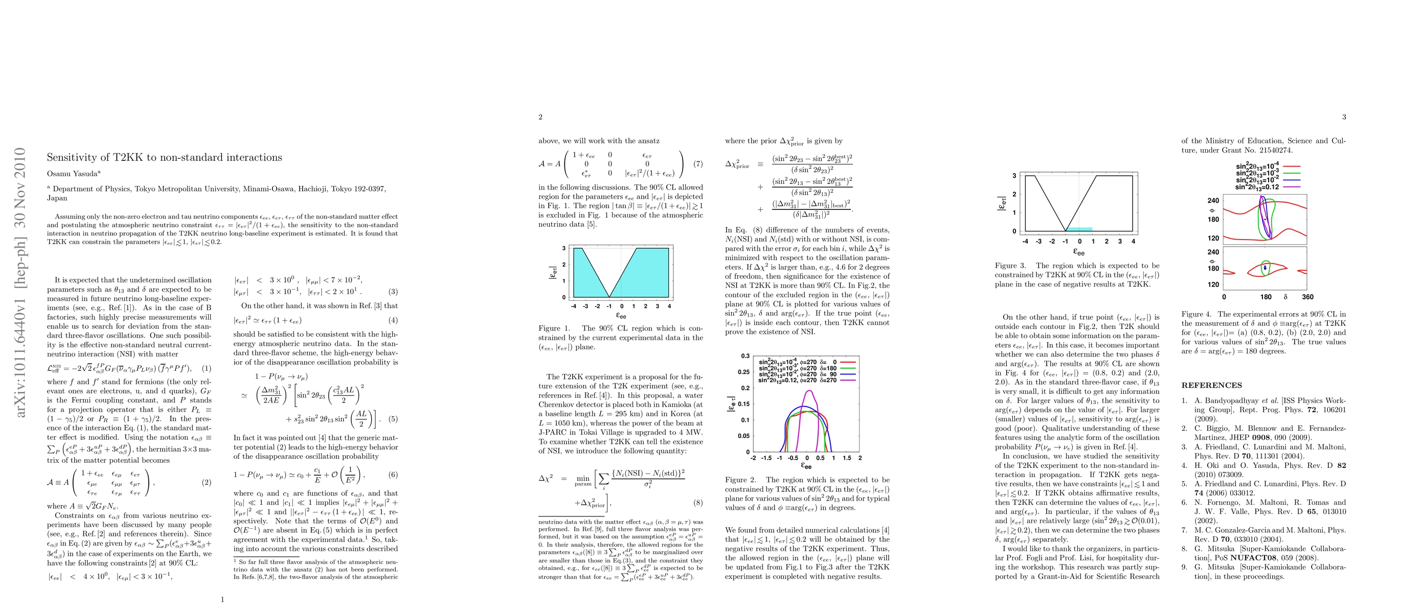 The T2KK long-baseline neutrino experiment can constrain non-standard interactions in neutrino propagation, particularly the parameters $|\epsilon_{ee}|\lesssim 1$ and $|\epsilon_{e\tau}|\lesssim 0.2$, under specific assumptions about the non-zero components of the neutrino interaction matrix. This study highlights the potential of T2KK to detect deviations from standard neutrino behavior.