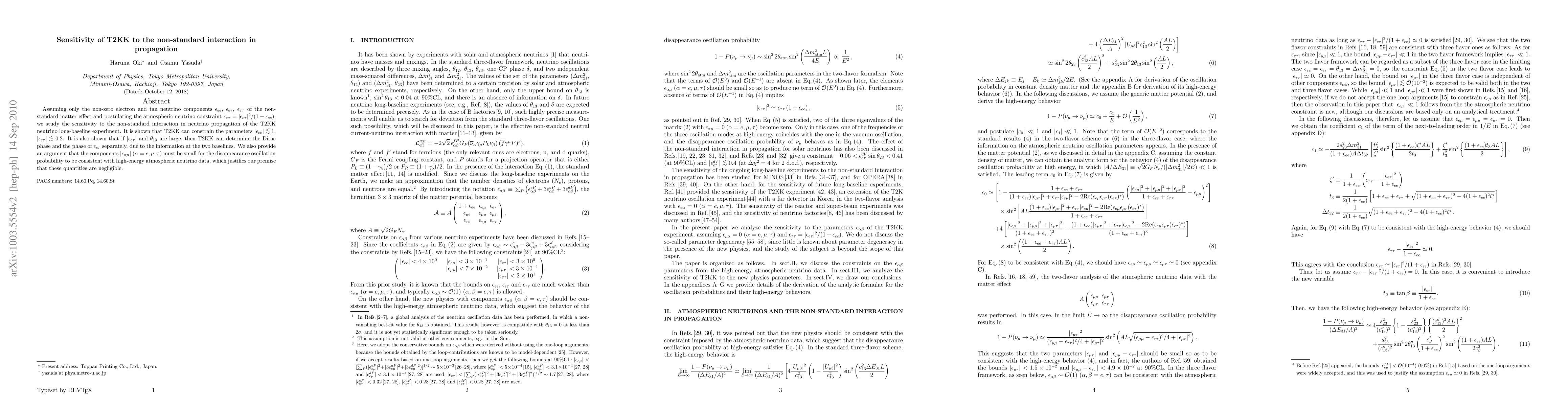 This paper investigates the sensitivity of the T2KK long-baseline neutrino experiment to non-standard interactions in neutrino propagation, focusing on specific non-zero components. It shows that T2KK can constrain these parameters and determine the Dirac phase and $\epsilon_{e\tau}$ phase under certain conditions, while arguing that other components are negligible.