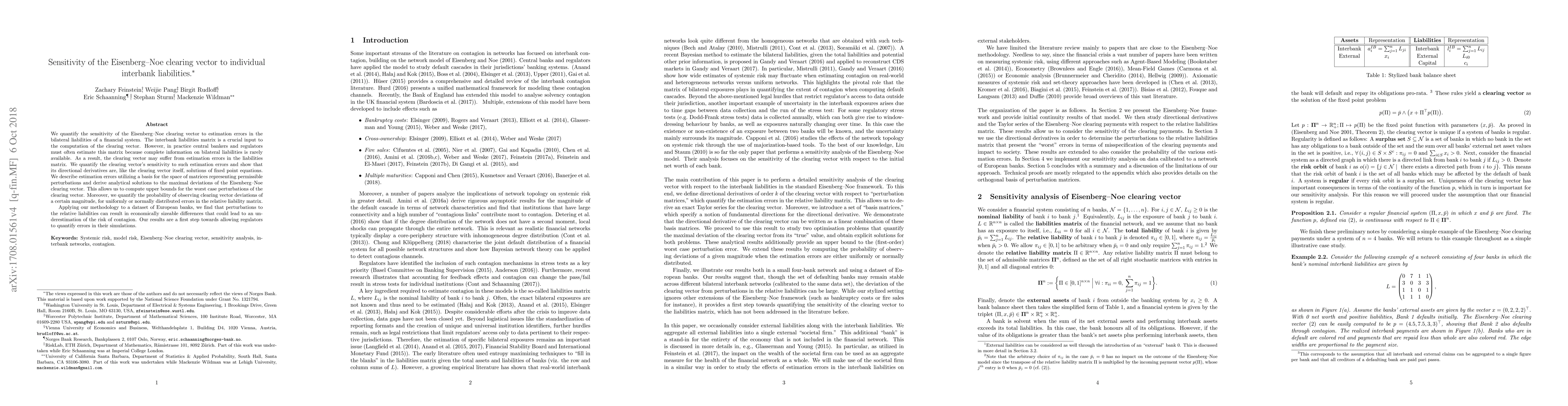 This paper quantifies how the Eisenberg-Noe clearing vector is sensitive to estimation errors in interbank liabilities, showing that such errors can lead to significant deviations in the vector, potentially underestimating contagion risk. The authors provide analytical solutions for maximal deviations and probability distributions for error magnitudes, applying their methodology to European banks to demonstrate practical implications.