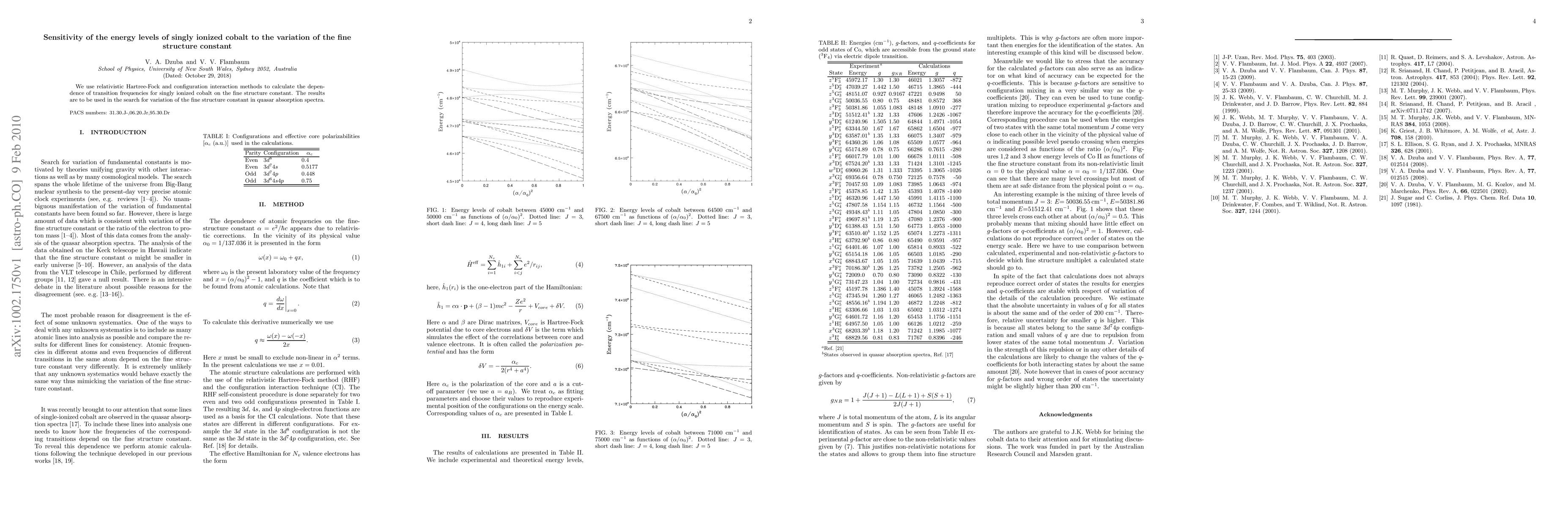 This paper calculates the sensitivity of singly ionized cobalt's energy levels to changes in the fine structure constant using relativistic Hartree-Fock and configuration interaction methods. The findings aim to aid in detecting potential variations of the fine structure constant in quasar absorption spectra.