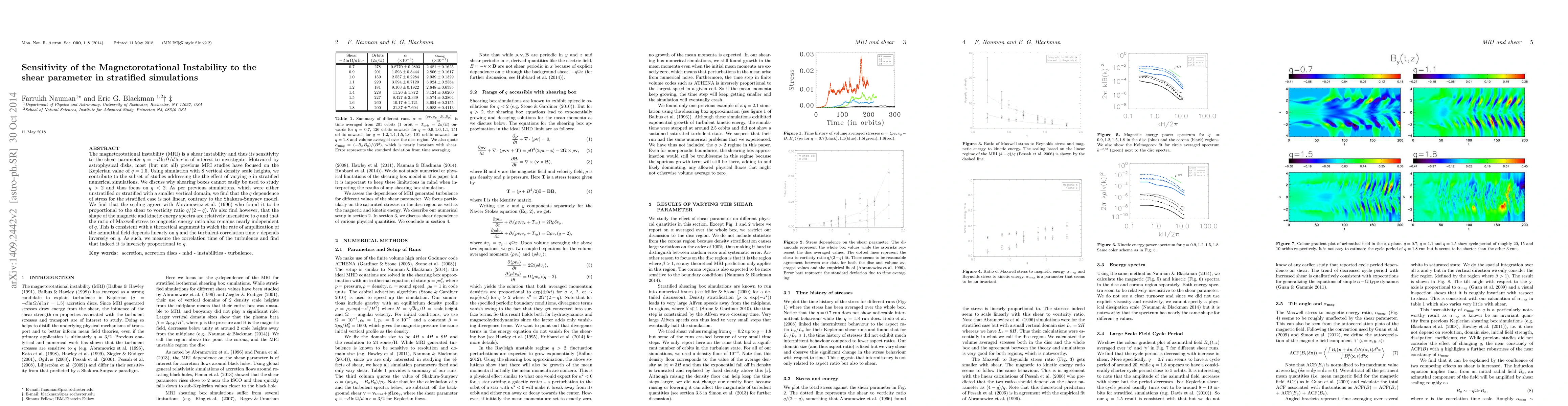 This study investigates the magnetorotational instability (MRI) under varying shear parameters $q$ in stratified simulations, finding that the $q$ dependence of stress is non-linear and proportional to $q/(2-q)$. The magnetic and kinetic energy spectra, as well as the ratio of Maxwell stress to magnetic energy, remain largely unaffected by $q$, consistent with the theory that links the turbulent correlation time inversely to $q$.