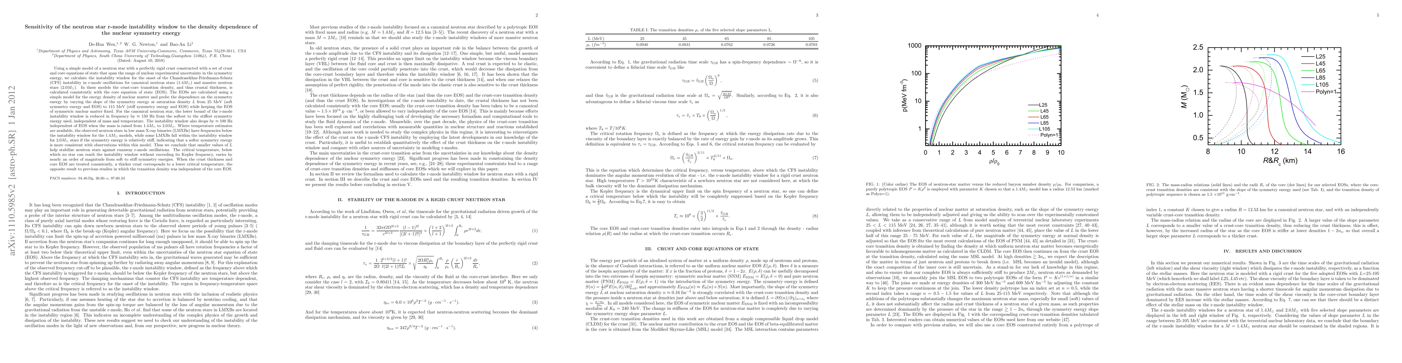 This study investigates how the density dependence of the nuclear symmetry energy affects the r-mode instability window in neutron stars. It finds that stiffer symmetry energy lowers the instability window by approximately 150 Hz for 1.4 M_{\odot} stars, while increasing mass to 2.0 M_{\odot} lowers it by about 100 Hz, regardless of symmetry energy. Observations suggest that a softer symmetry energy aligns better with current data.