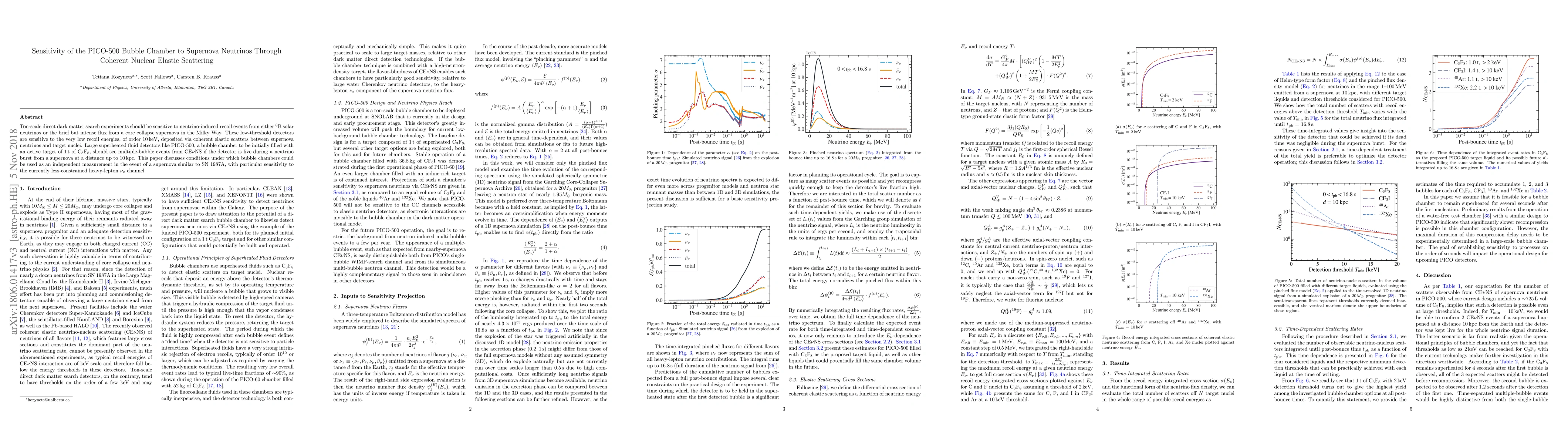 Ton-scale direct dark matter search experiments should be sensitive to neutrino-induced recoil events from either $^8$B solar neutrinos or the brief but intense flux from a core collapse supernova in the Milky Way. These low-threshold detectors are sensitive to the very low recoil energies, of order 10 keV, deposited via coherent elastic scatters between supernova neutrinos and target nuclei. Large superheated fluid detectors like PICO-500, a bubble chamber to be initially filled with an active target of 1 t of C$_3$F$_8$, should see multiple-bubble events from CE$\nu$NS if the detector is live during a neutrino burst from a supernova at a distance up to 10 kpc. This paper discusses conditions under which bubble chambers could be used as an independent measurement in the event of a supernova similar to SN 1987A, with particular sensitivity to the currently less-constrained heavy-lepton $\nu_x$ channel.