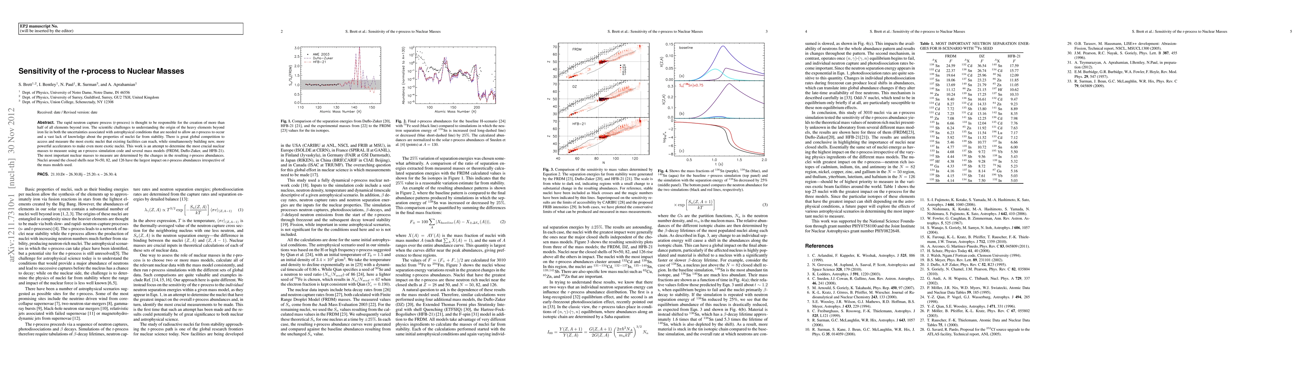 This paper investigates the sensitivity of the r-process to nuclear masses, determining the most crucial masses to measure for understanding heavy element formation. Nuclei near N=50, 82, and 126 significantly impact r-process abundances, regardless of the mass model used.