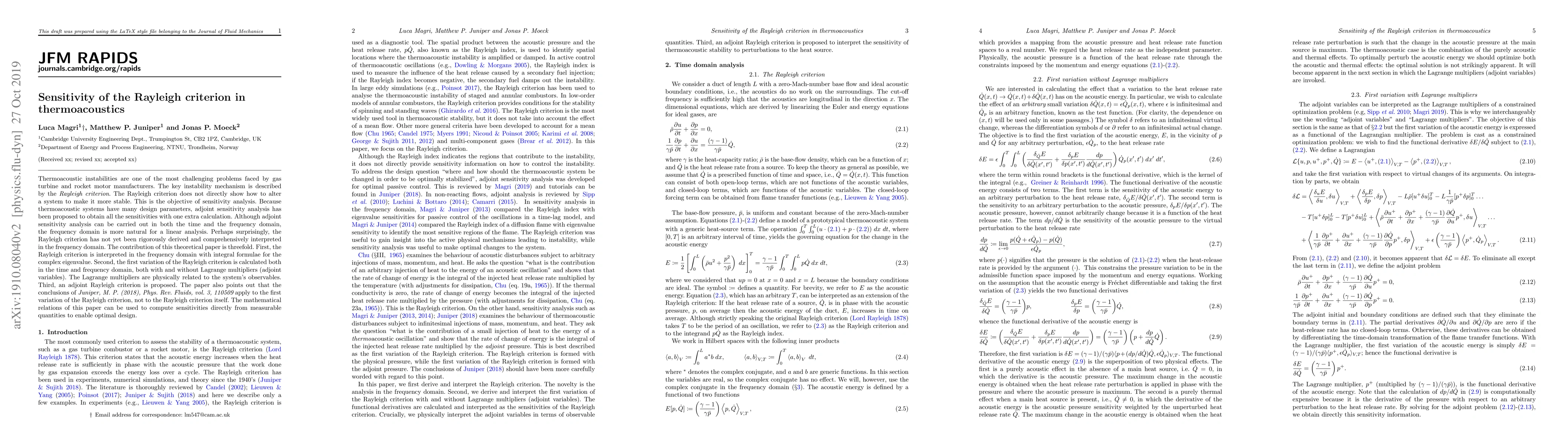 The study provided integral formulae for the complex eigenvalue and an adjoint Rayleigh criterion.