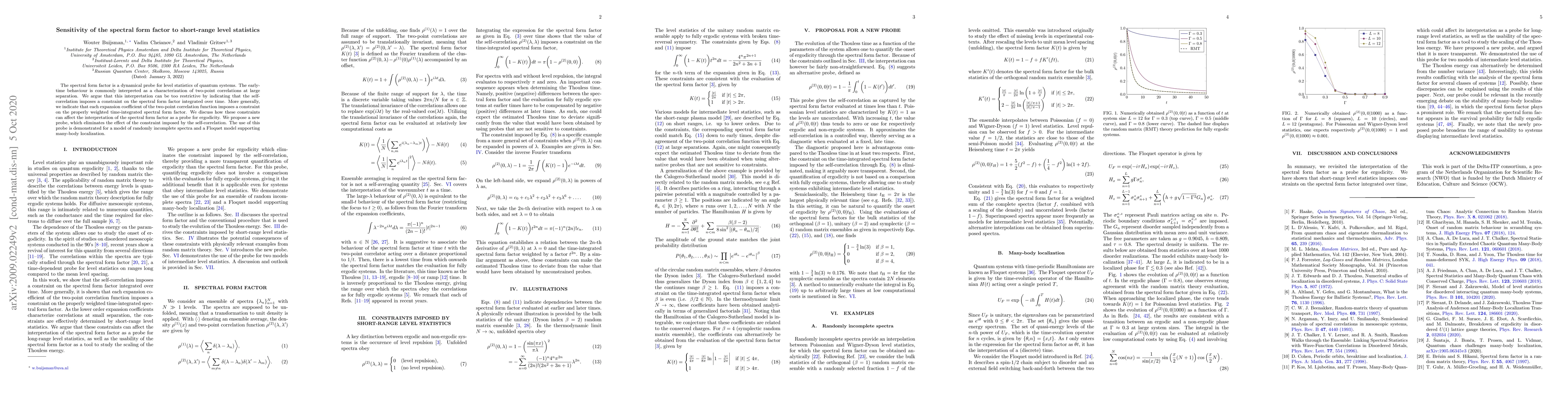 This paper explores how the spectral form factor, a measure of quantum system dynamics, is influenced by short-range level statistics and self-correlation constraints. It proposes a new probe to better interpret ergodicity by eliminating self-correlation effects, demonstrated through randomly incomplete spectra and many-body localization models.