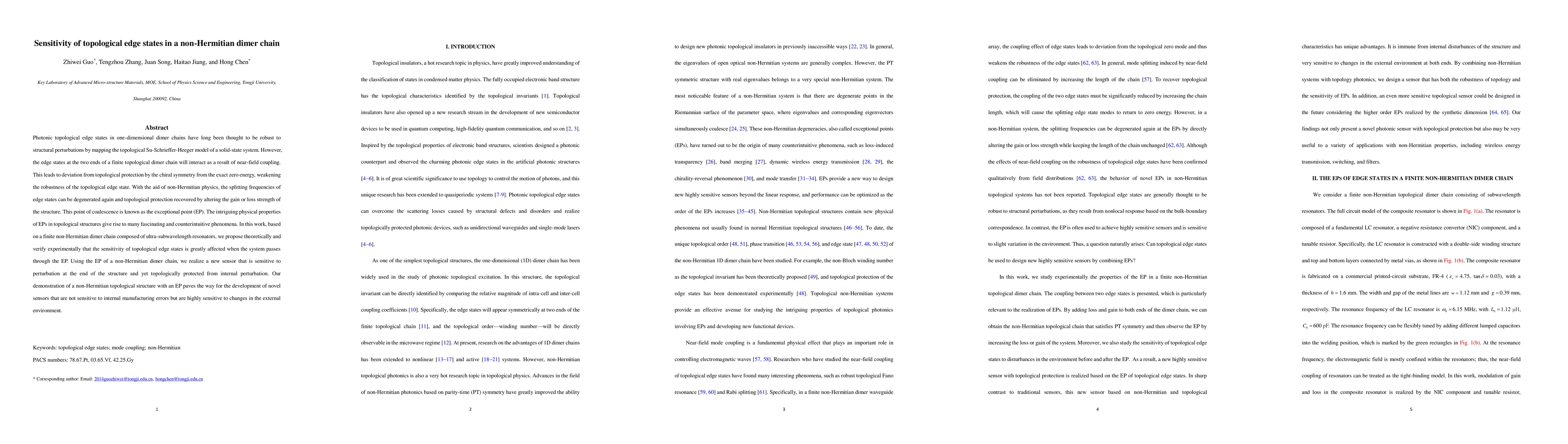 This paper investigates how topological edge states in a non-Hermitian dimer chain are affected by perturbations, demonstrating that exceptional points (EP) can restore topological protection. The study proposes and verifies a new sensor that is sensitive to external changes while remaining robust to internal errors, leveraging the unique properties of non-Hermitian systems.