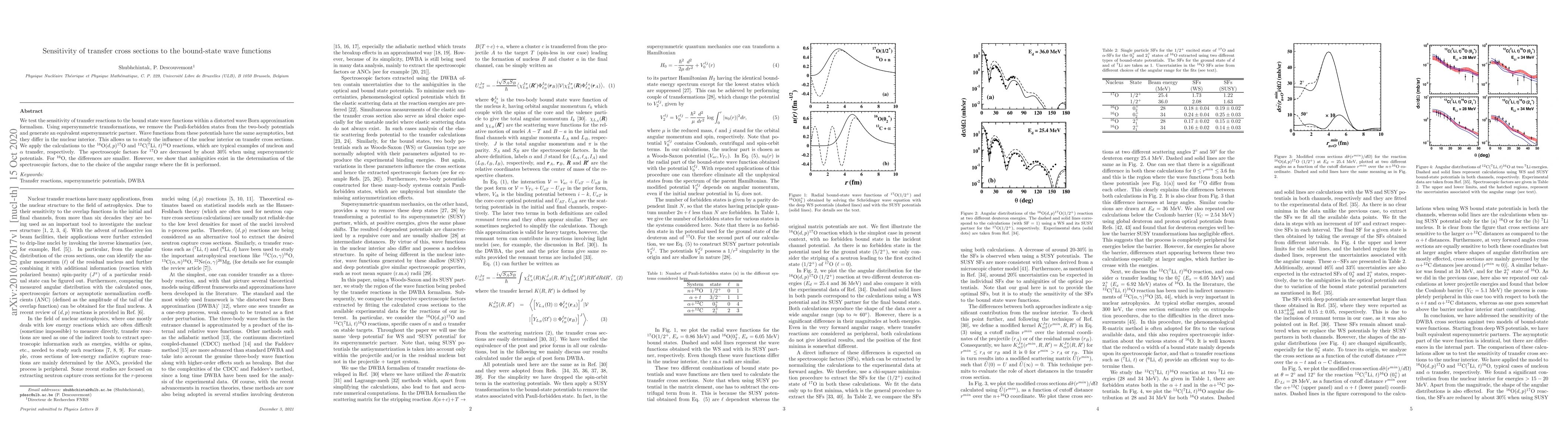We test the sensitivity of transfer reactions to the bound state wave functions within a distorted wave Born approximation formalism. Using supersymmetric transformations, we remove the Pauli-forbidden states from the two-body potentials and generate an equivalent supersymmetric partner. Wave functions from these potentials have the same asymptotics, but they differ in the nuclear interior. This allows us to study the influence of the nuclear interior on transfer cross sections. We apply the calculations to the $^{16}$O($d, p$)$^{17}$O and $^{12}$C($^7$Li, $t$)$^{16}$O reactions, which are typical examples of nucleon and $\alpha$ transfer, respectively. The spectroscopic factors for $^{17}$O are decreased by about 30\% when using supersymmetric potentials. For $^{16}$O, the differences are smaller. However, we show that ambiguities exist in the determination of the spectroscopic factors, due to the choice of the angular range where the fit is performed.