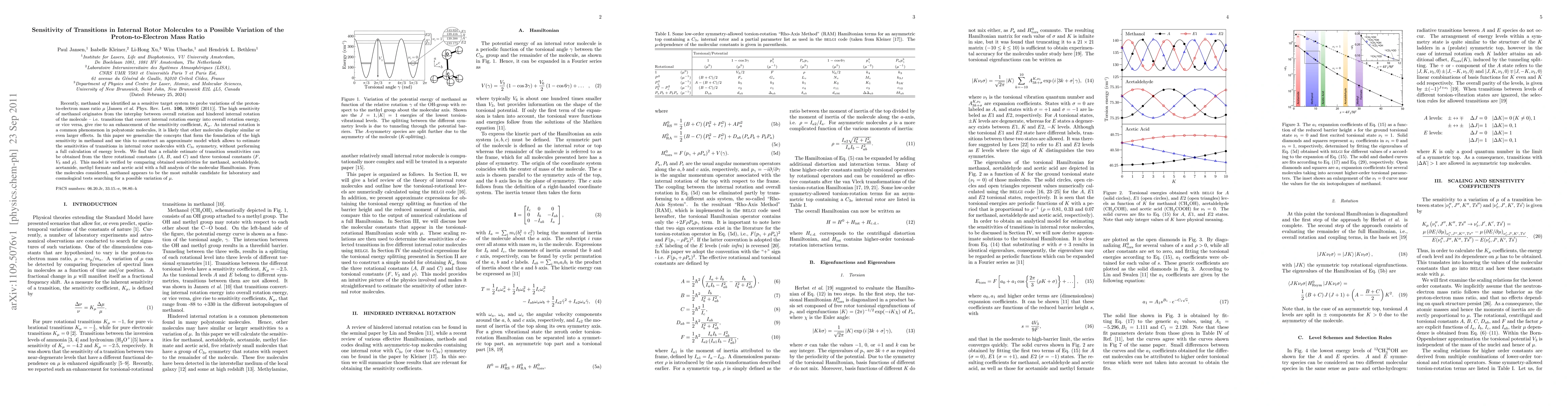 This paper develops a model to estimate the sensitivity of transitions in internal rotor molecules to variations in the proton-to-electron mass ratio, finding that methanol is highly sensitive due to its rotational and internal rotational dynamics. The model uses rotational and torsional constants to predict sensitivities without full energy level calculations.