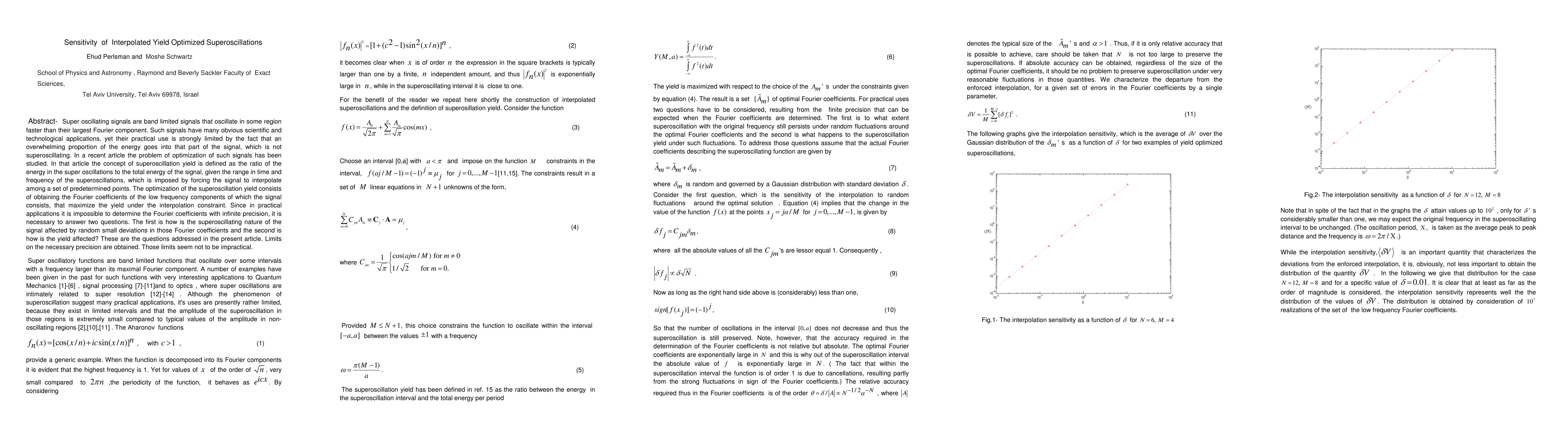 Super oscillating signals are band limited signals that oscillate in some region faster than their largest Fourier component. Such signals have many obvious scientific and technological applications, yet their practical use is strongly limited by the fact that an overwhelming proportion of the energy goes into that part of the signal, which is not superoscillating. In a recent article the problem of optimization of such signals has been studied. In that article the concept of superoscillation yield is defined as the ratio of the energy in the super oscillations to the total energy of the signal, given the range in time and frequency of the superoscillations, which is imposed by forcing the signal to interpolate among a set of predetermined points. The optimization of the superoscillation yield consists of obtaining the Fourier coefficients of the low frequency components of which the signal consists, that maximize the yield under the interpolation constraint. Since in practical applications it is impossible to determine the Fourier coefficients with infinite precision, it is necessary to answer two questions. The first is how is the superoscillating nature of the signal affected by random small deviations in those Fourier coefficients and the second is how is the yield affected? These are the questions addressed in the present article. Limits on the necessary precision are obtained. Those limits seem not to be impractical.