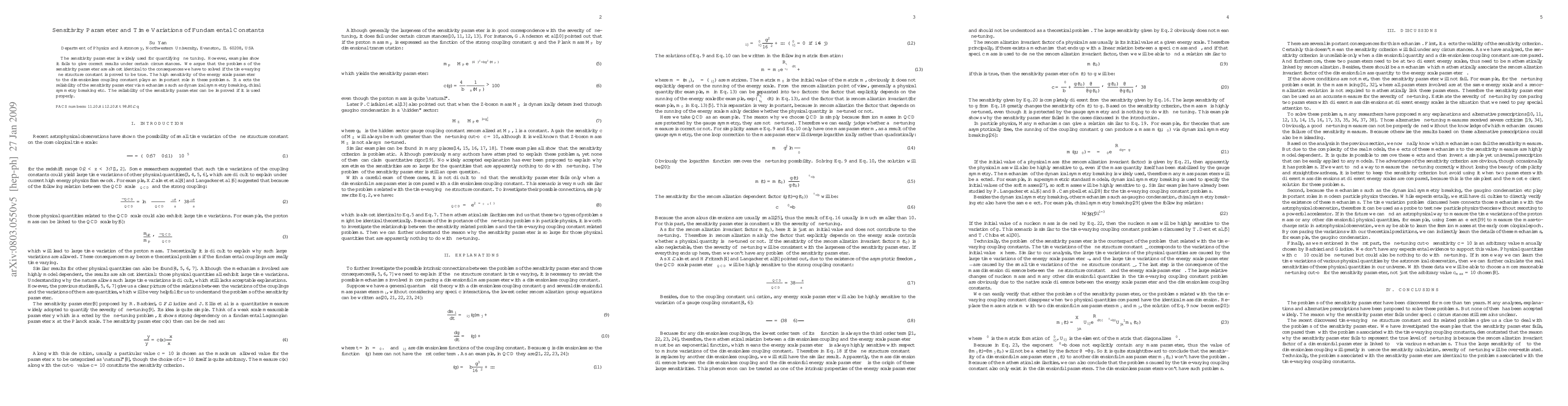 The sensitivity parameter is widely used for quantifying fine tuning. However, examples show it fails to give correct results under certain circumstances. We argue that the problems of the sensitivity parameter are almost identical to the consequences we have to solved if the time-varying fine structure constant is proved to be true. The high sensitivity of the energy scale parameter (\Lambda) to the dimensionless coupling constant plays an important role in these problems. It affects the reliability of the sensitivity parameter via mechanisms such as dynamical symmetry breaking, chiral symmetry breaking etc. The reliability of the sensitivity parameter can be improved if it is used properly.