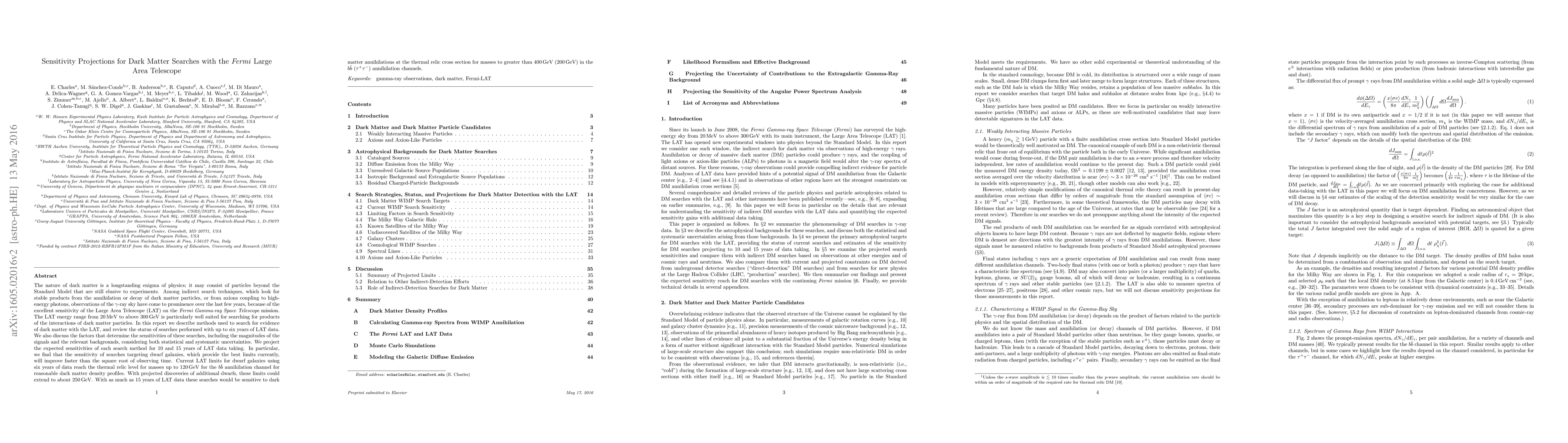 This paper discusses the use of the Fermi Large Area Telescope (LAT) for indirect dark matter searches through $\gamma$-ray observations, projecting improved sensitivities with extended data collection. Current limits on dark matter masses up to 120 GeV are set, with future projections indicating sensitivity to masses up to 400 GeV over 15 years of observation.