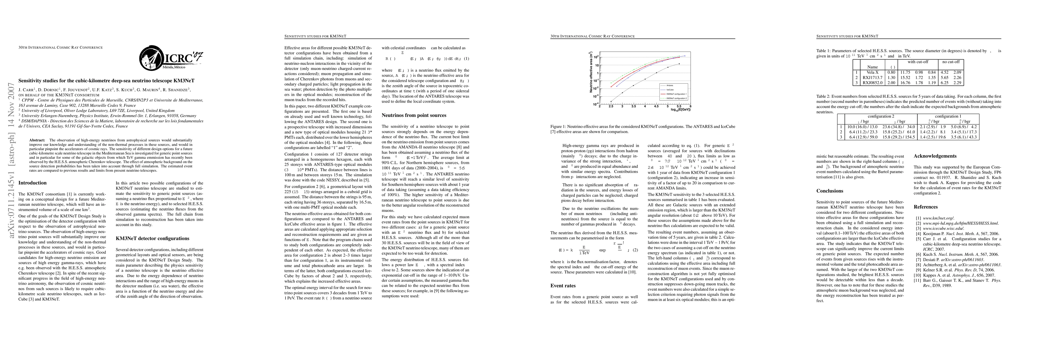 This study investigates the sensitivity of a cubic-kilometre deep-sea neutrino telescope in detecting high-energy neutrinos from astrophysical sources, with implications for understanding cosmic ray accelerators and pinpointing specific galactic objects.