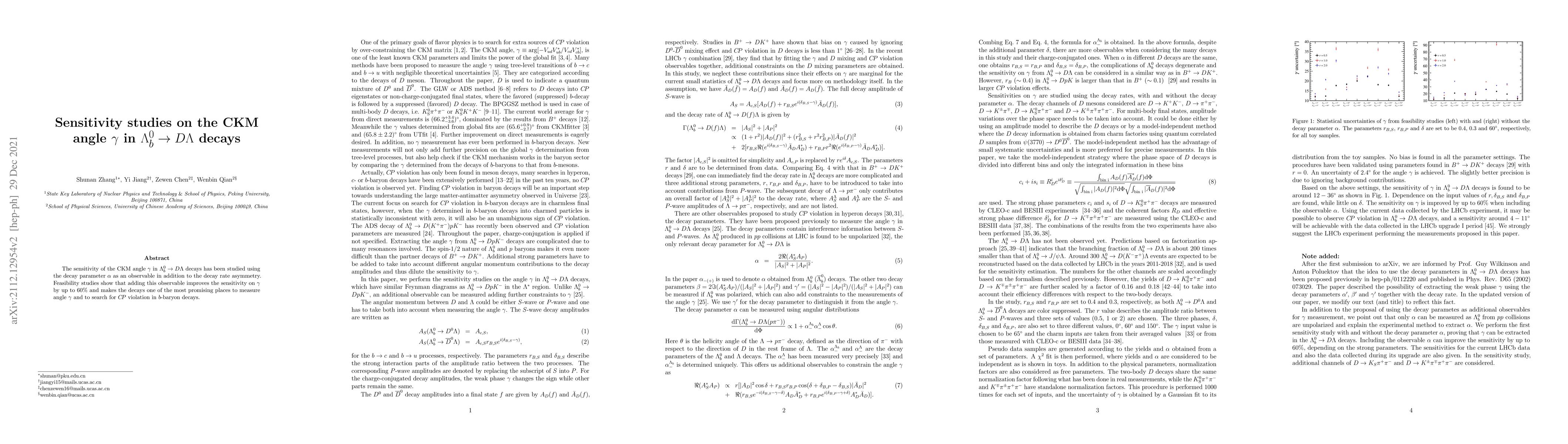 Researchers studied the sensitivity of the CKM angle gamma in a specific type of particle decay, finding that adding an extra observable improves its measurement sensitivity by up to 60%.