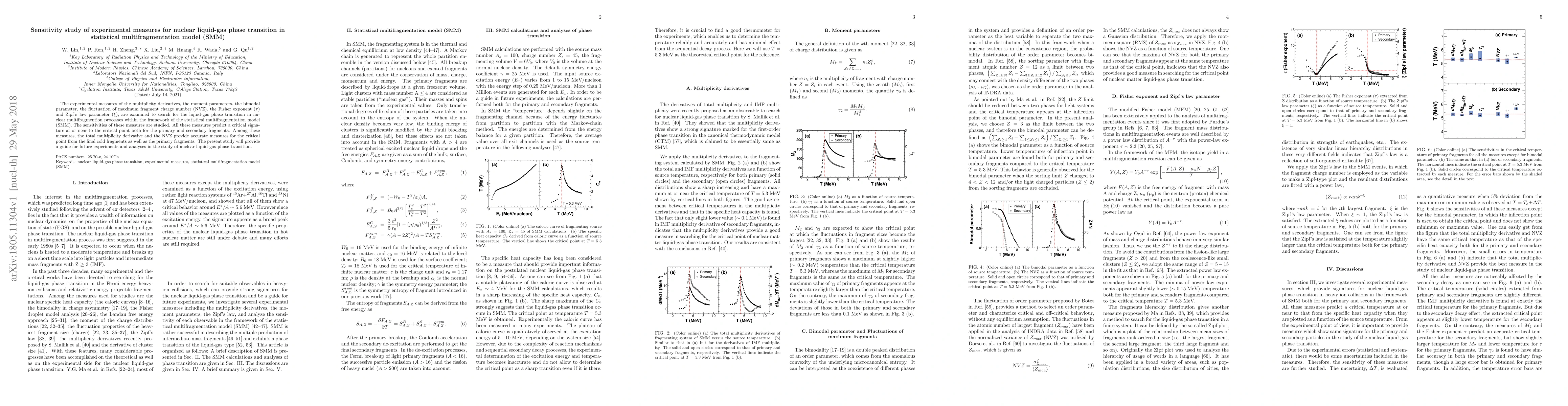 This paper investigates various experimental measures within the statistical multifragmentation model to identify the nuclear liquid-gas phase transition. It finds that the total multiplicity derivative and the NVZ fluctuation are particularly sensitive indicators of the critical point in both primary and secondary fragments.