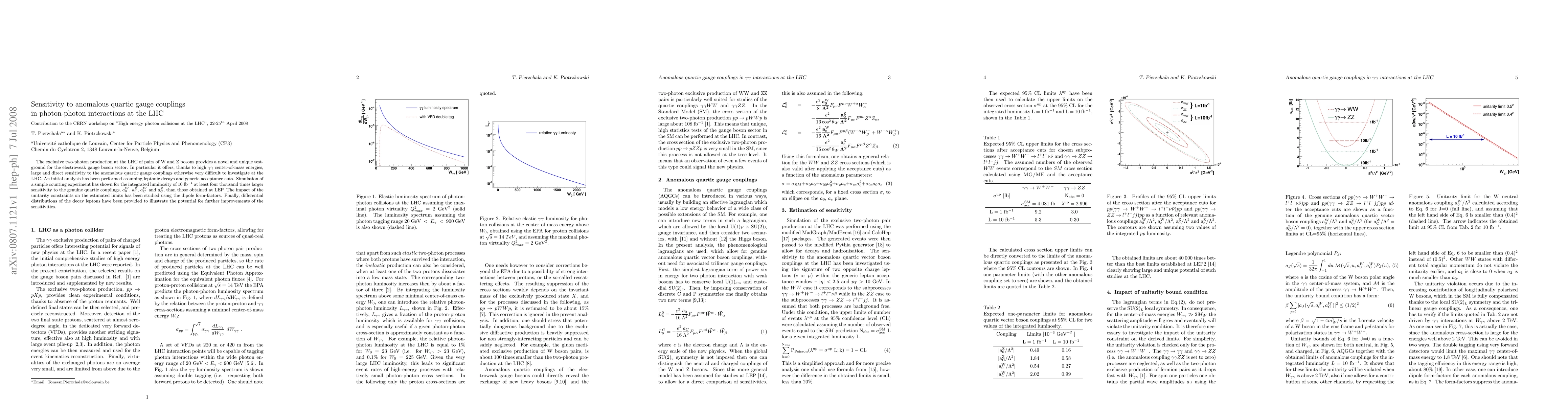 This research investigates the sensitivity to anomalous quartic gauge couplings in photon-photon interactions at the LHC, demonstrating significant potential for detecting these couplings through exclusive two-photon production of W and Z bosons, offering a more sensitive approach than previous LEP experiments. The study also explores the impact of unitarity constraints and provides differential distributions for decay leptons to enhance future sensitivity.