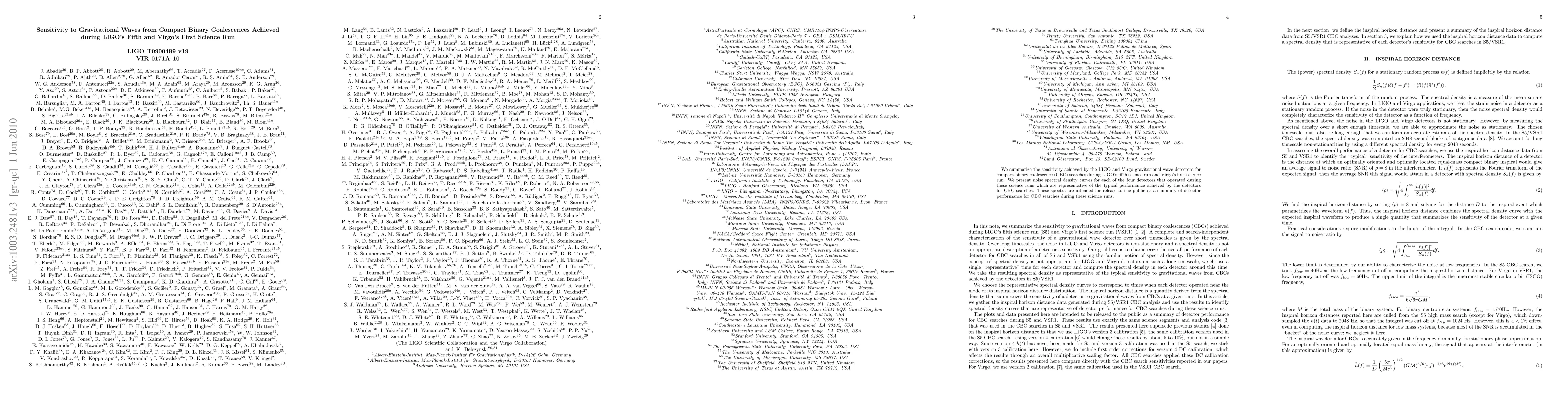 This paper summarizes the sensitivity of LIGO and Virgo detectors during their fifth science run and Virgo's first science run for compact binary coalescence searches. It presents noise spectral density curves for each detector, showcasing the typical performance achieved during these runs.