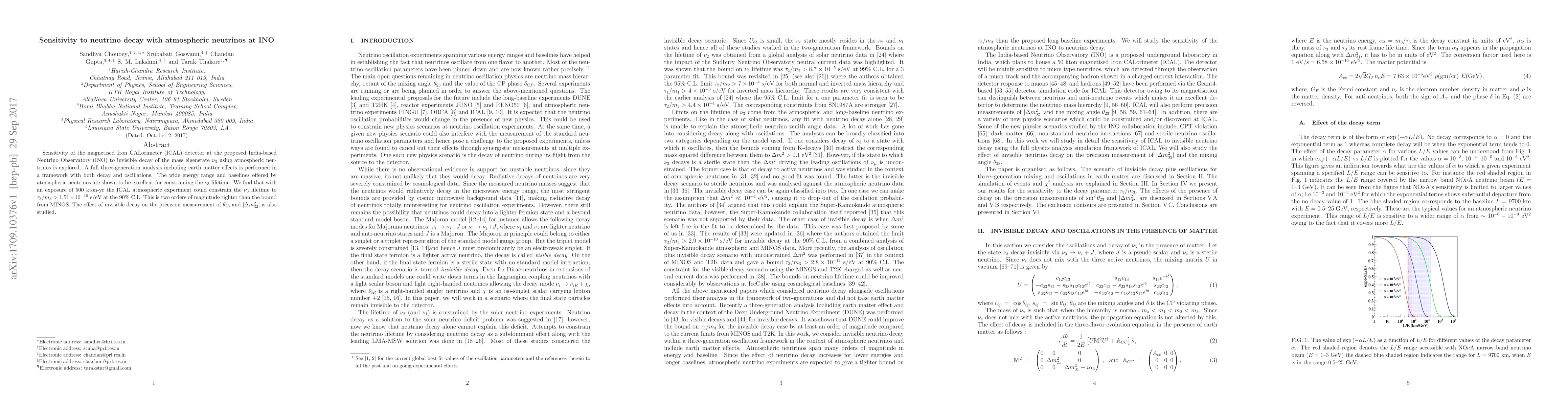 The paper presents a detailed analysis technique for constraining neutrino decay parameters using atmospheric neutrinos, employing a comprehensive simulation framework for the ICAL detector.