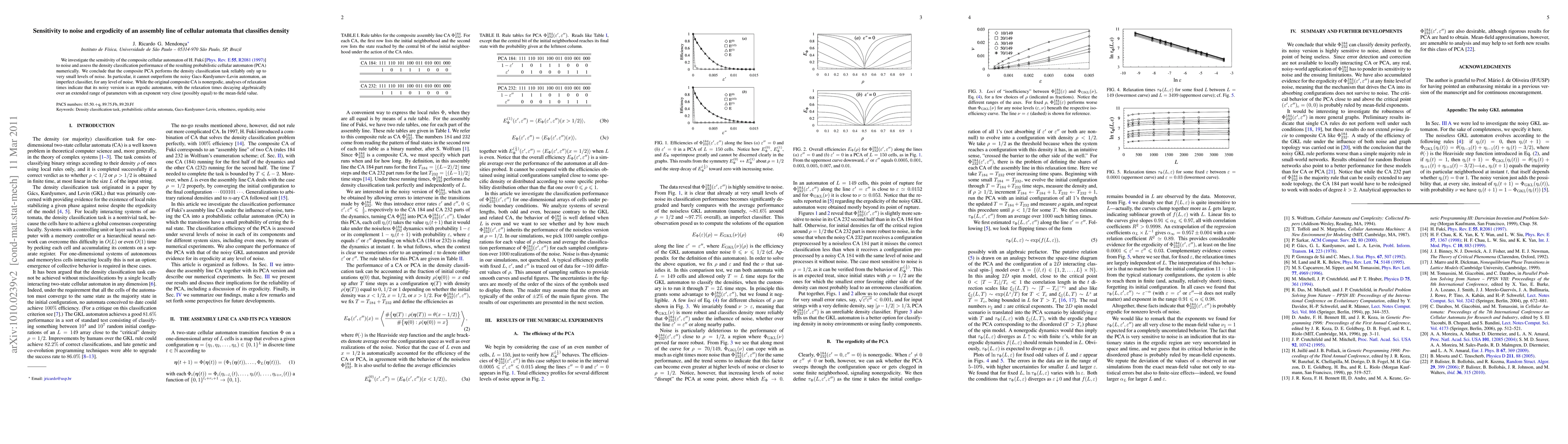 We investigate the sensitivity of the composite cellular automaton of H. Fuk\'{s} [Phys. Rev. E 55, R2081 (1997)] to noise and assess the density classification performance of the resulting probabilistic cellular automaton (PCA) numerically. We conclude that the composite PCA performs the density classification task reliably only up to very small levels of noise. In particular, it cannot outperform the noisy Gacs-Kurdyumov-Levin automaton, an imperfect classifier, for any level of noise. While the original composite CA is nonergodic, analyses of relaxation times indicate that its noisy version is an ergodic automaton, with the relaxation times decaying algebraically over an extended range of parameters with an exponent very close (possibly equal) to the mean-field value.