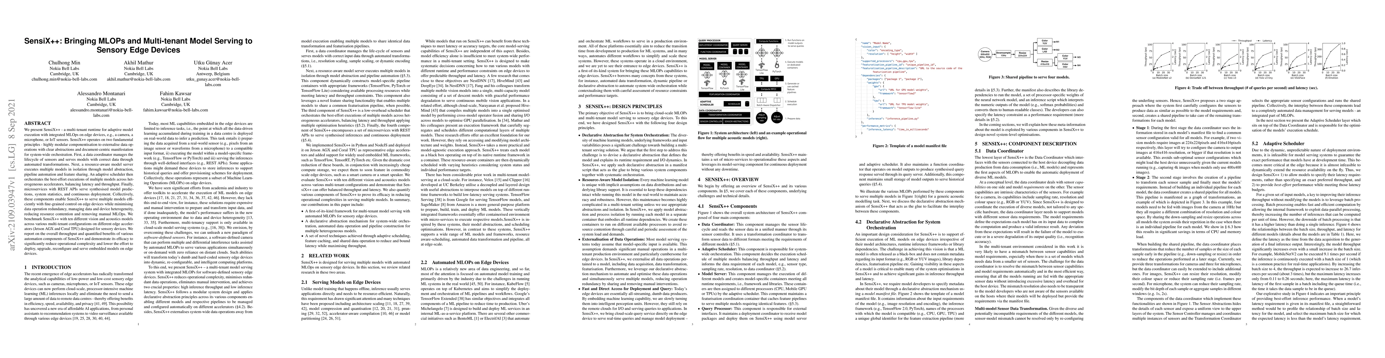 SensiX++ is a multi-tenant runtime for efficient model execution on edge devices, featuring modular components for data management and model orchestration, and automated MLOps. It significantly reduces operational complexity and lowers the effort for deploying and managing models on sensory edge devices.