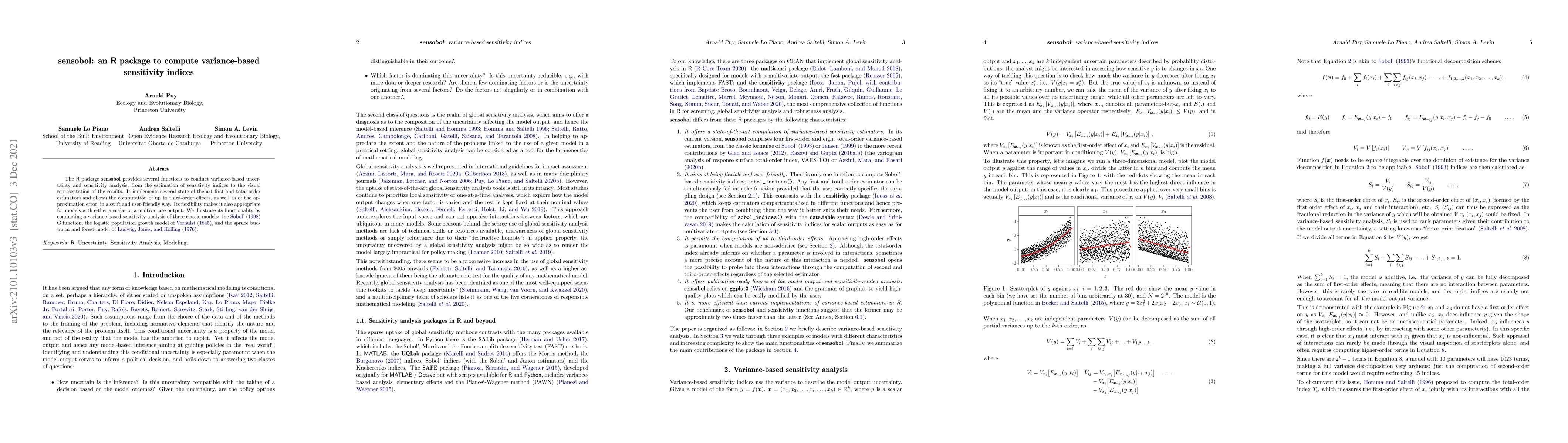 The R package "sensobol" facilitates variance-based uncertainty and sensitivity analysis through various functions, implementing advanced estimators for first and total-order indices, and supporting up to third-order effects. It is demonstrated through sensitivity analyses of three classic models: the Sobol' G function, Verhulst's logistic growth model, and Ludwig et al.'s spruce budworm model.