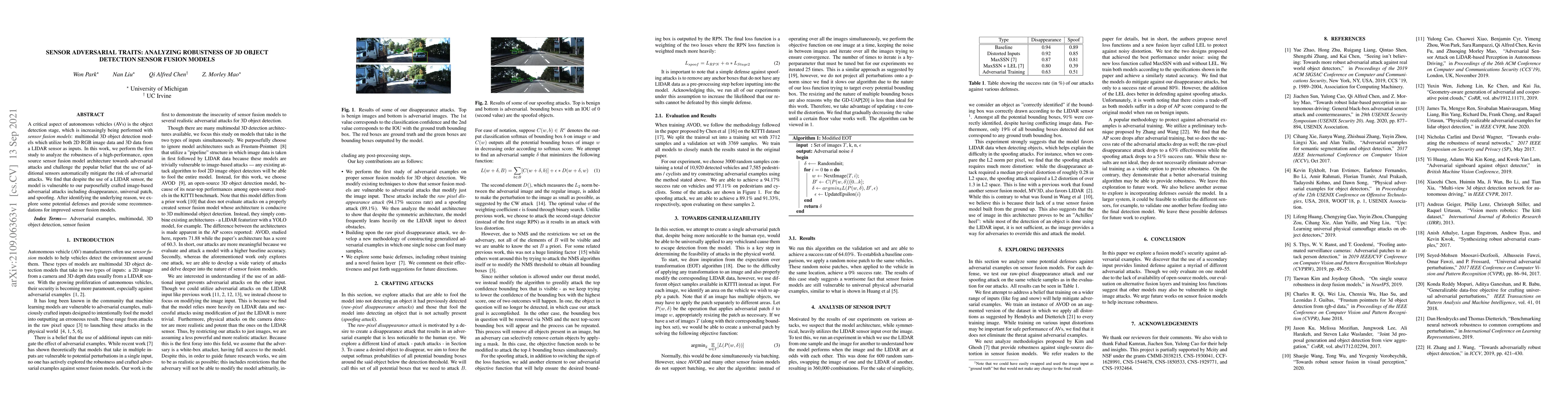 This paper investigates the robustness of sensor fusion models used in 3D object detection for autonomous vehicles against adversarial attacks. Despite employing both LIDAR and RGB data, the model remains vulnerable to crafted image-based attacks, challenging the notion that additional sensors inherently enhance security. The study proposes potential defenses and recommendations for more resilient models.