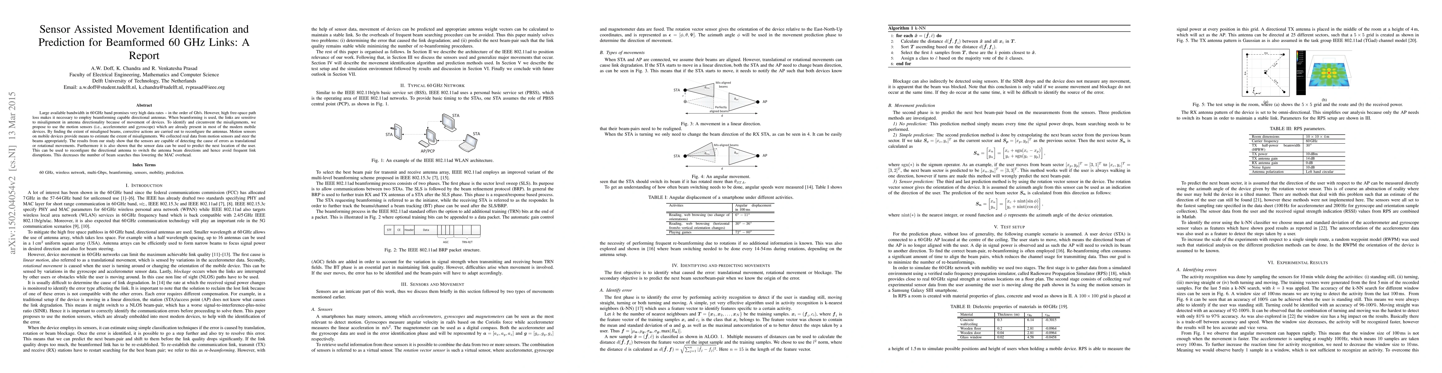 A study demonstrates how motion sensors on mobile devices can detect misalignments in beamforming antennas for 60 GHz links, allowing for corrective actions to reconfigure the antennas and improve link stability.