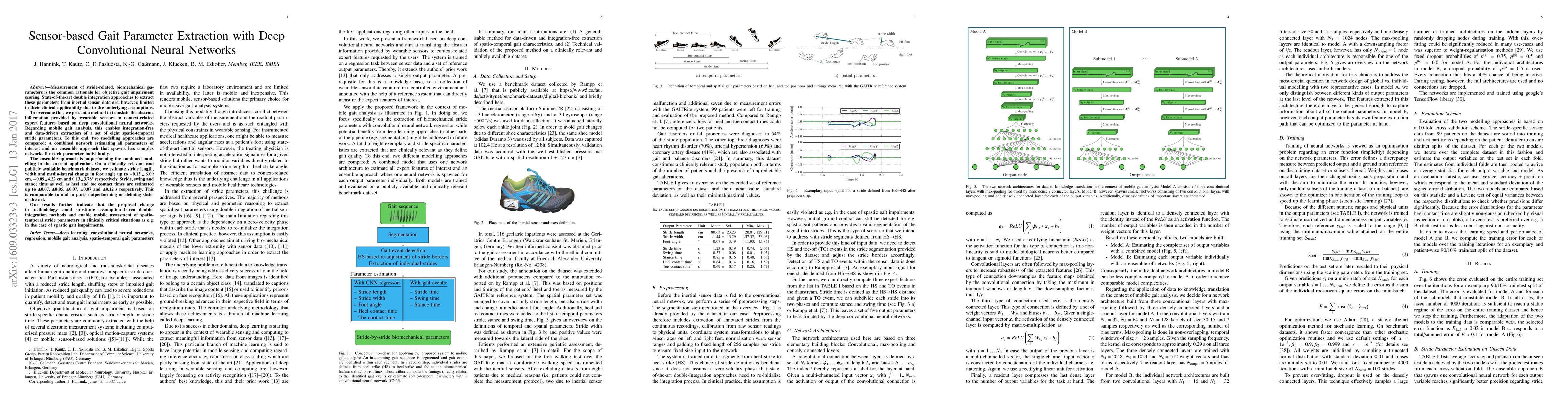 This research introduces a deep learning method using Convolutional Neural Networks to extract gait parameters from sensor data, bypassing the need for traditional double integration. The method outperforms existing techniques, accurately estimating stride length, width, foot angle changes, and various time parameters. It has potential to replace assumption-driven methods for clinical gait analysis, especially for conditions like spastic gait impairments.