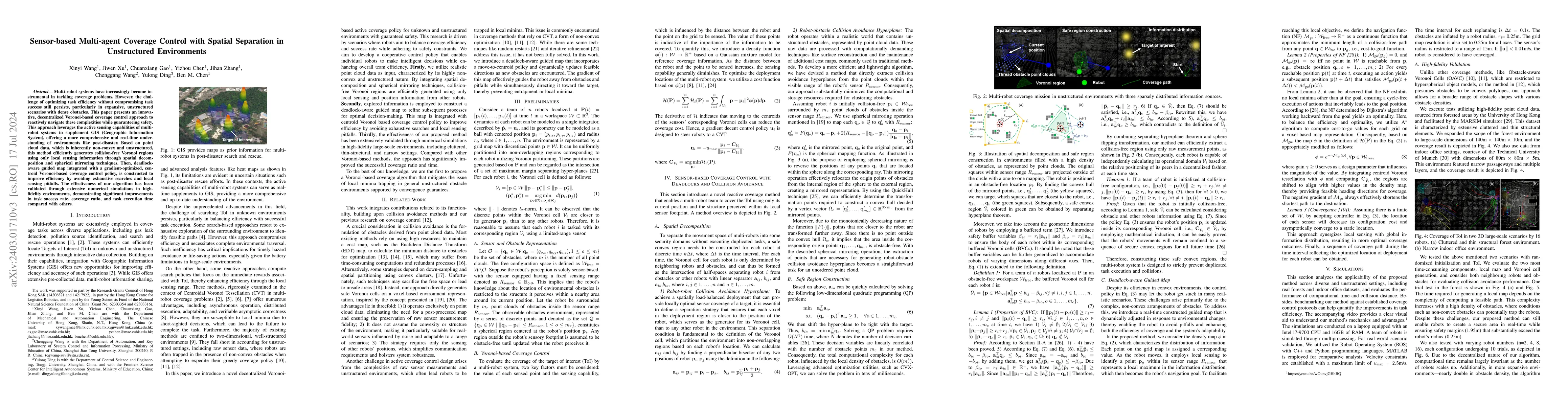 This paper introduces a decentralized Voronoi-based method for multi-robot search and coverage in unstructured environments, leveraging local sensing and spatial decomposition to create collision-free regions and optimize task efficiency, validated by improved success and execution times in simulations.