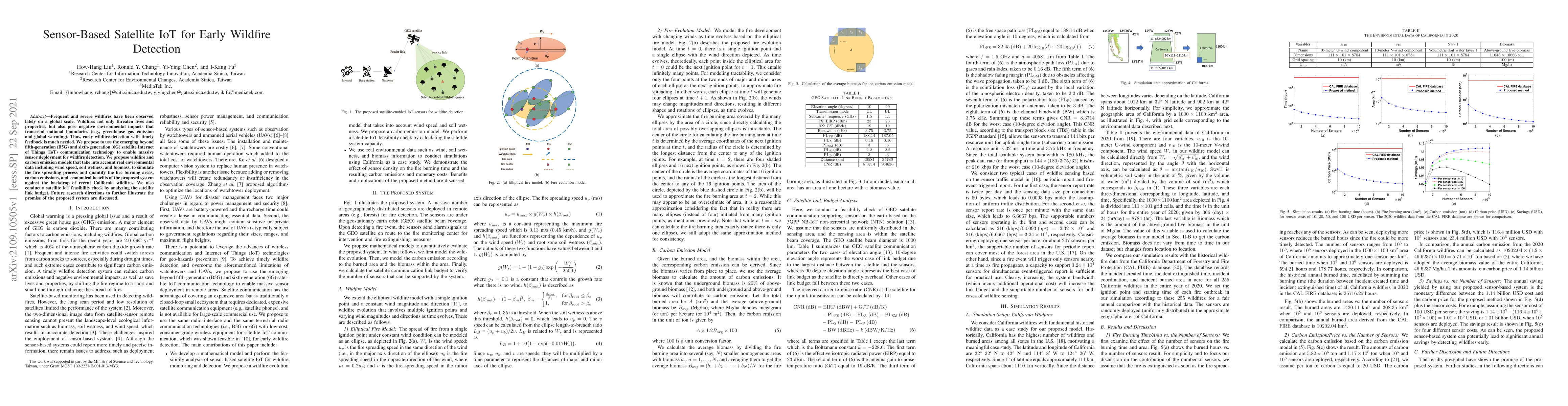 Frequent and severe wildfires have been observed lately on a global scale. Wildfires not only threaten lives and properties, but also pose negative environmental impacts that transcend national boundaries (e.g., greenhouse gas emission and global warming). Thus, early wildfire detection with timely feedback is much needed. We propose to use the emerging beyond fifth-generation (B5G) and sixth-generation (6G) satellite Internet of Things (IoT) communication technology to enable massive sensor deployment for wildfire detection. We propose wildfire and carbon emission models that take into account real environmental data including wind speed, soil wetness, and biomass, to simulate the fire spreading process and quantify the fire burning areas, carbon emissions, and economical benefits of the proposed system against the backdrop of recent California wildfires. We also conduct a satellite IoT feasibility check by analyzing the satellite link budget. Future research directions to further illustrate the promise of the proposed system are discussed.