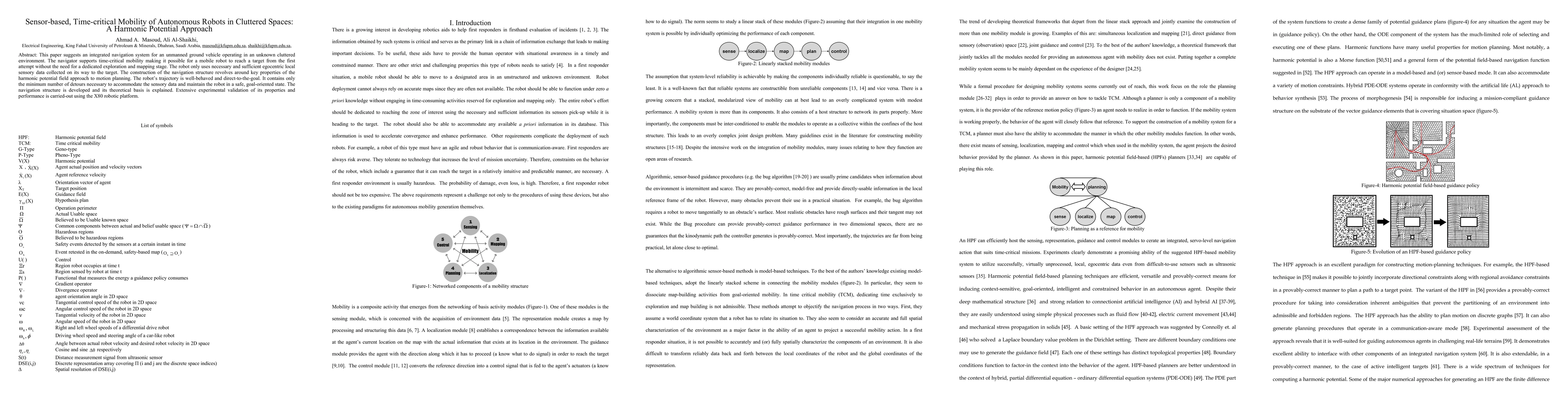 This paper proposes a sensor-based navigation system for autonomous robots in cluttered environments, utilizing a harmonic potential approach to enable time-critical mobility and direct, minimal-detour paths to targets without prior exploration. Experimental validation on the X80 platform demonstrates the system's effectiveness.