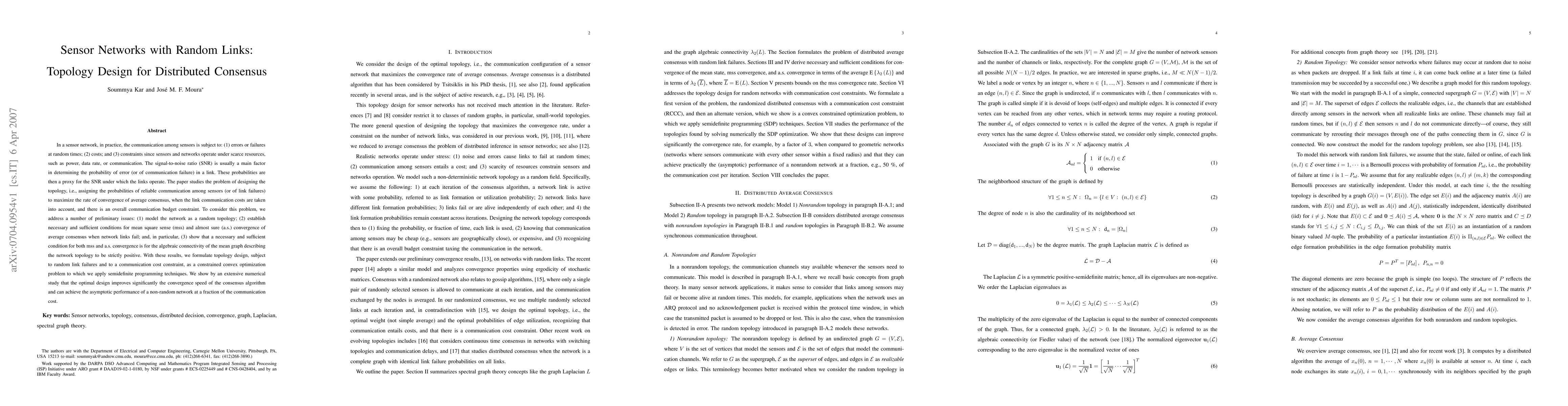 This paper investigates the design of topologies for sensor networks with random links to maximize the rate of consensus convergence under communication costs and budget constraints. It establishes conditions for mean square and almost sure convergence, formulates the topology design as a constrained convex optimization problem, and demonstrates significant improvements in convergence speed through numerical studies.