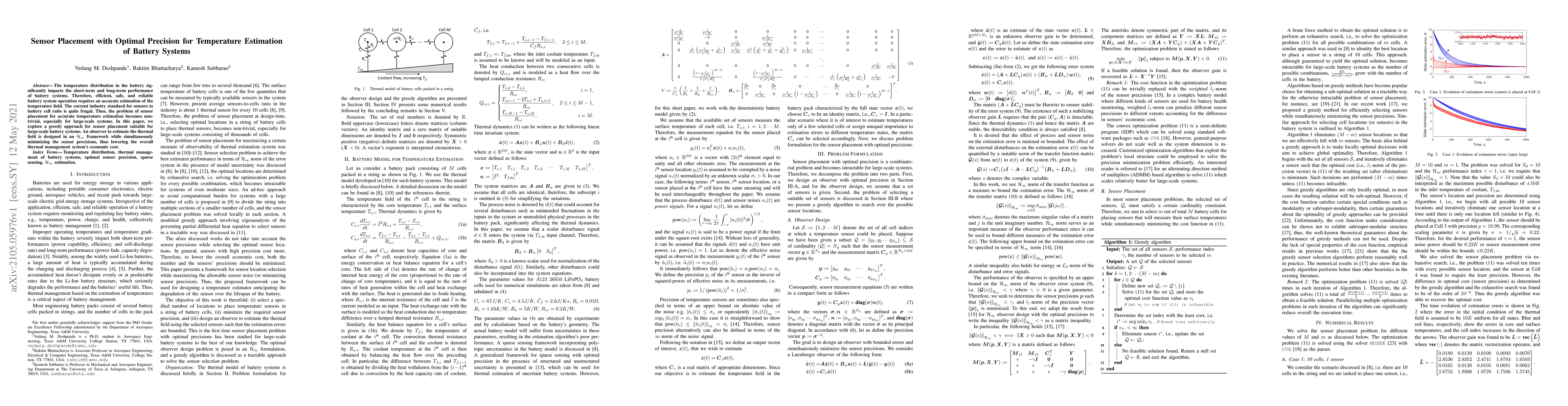 The temperature distribution in the battery significantly impacts the short-term and long-term performance of battery systems. Therefore, efficient, safe, and reliable battery system operation requires an accurate estimation of the temperature field. The current industry standard for sensors to battery cell ratio is quite frugal. Thus, the problem of sensor placement for accurate temperature estimation becomes non-trivial, especially for large-scale systems. In this paper, we explore a greedy approach for sensor placement suitable for large-scale battery systems. An observer to estimate the thermal field is designed in an $\mathcal{H}_{\infty}$ framework while simultaneously minimizing the sensor precisions, thus lowering the overall thermal management system's economic cost.