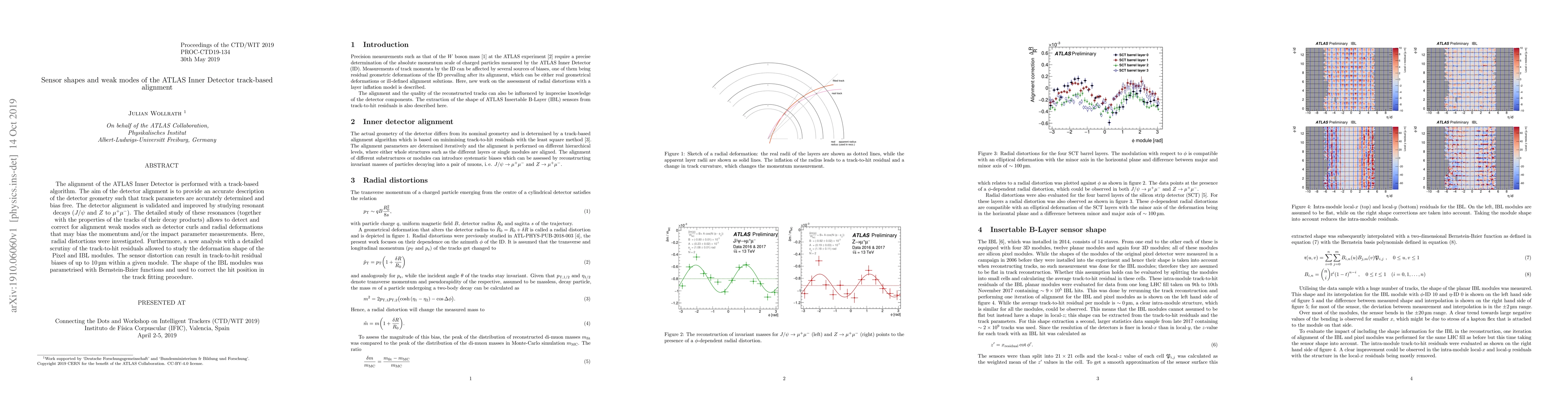The alignment of the ATLAS Inner Detector is performed with a track-based algorithm. The aim of the detector alignment is to provide an accurate description of the detector geometry such that track parameters are accurately determined and bias free. The detector alignment is validated and improved by studying resonant decays ($J/\psi$ and $Z$ to $\mu^+\mu^-$). The detailed study of these resonances (together with the properties of the tracks of their decay products) allows to detect and correct for alignment weak modes such as detector curls and radial deformations that may bias the momentum and/or the impact parameter measurements. Here, radial distortions were investigated. Furthermore, a new analysis with a detailed scrutiny of the track-to-hit residuals allowed to study the deformation shape of the Pixel and IBL modules. The sensor distortion can result in track-to-hit residual biases of up to $10\mu m$ within a given module. The shape of the IBL modules was parametrised with Bernstein-B\'ezier functions and used to correct the hit position in the track fitting procedure.